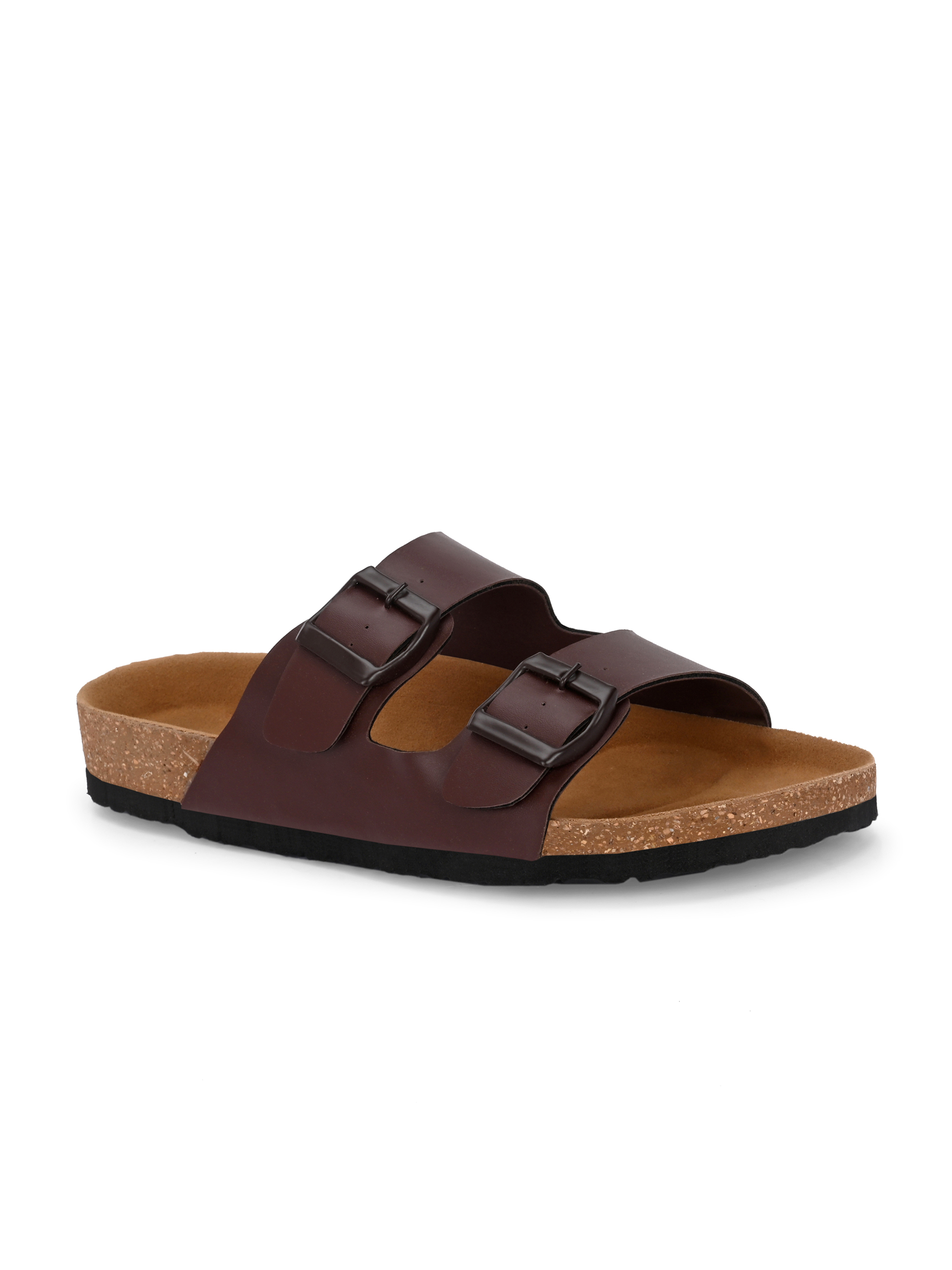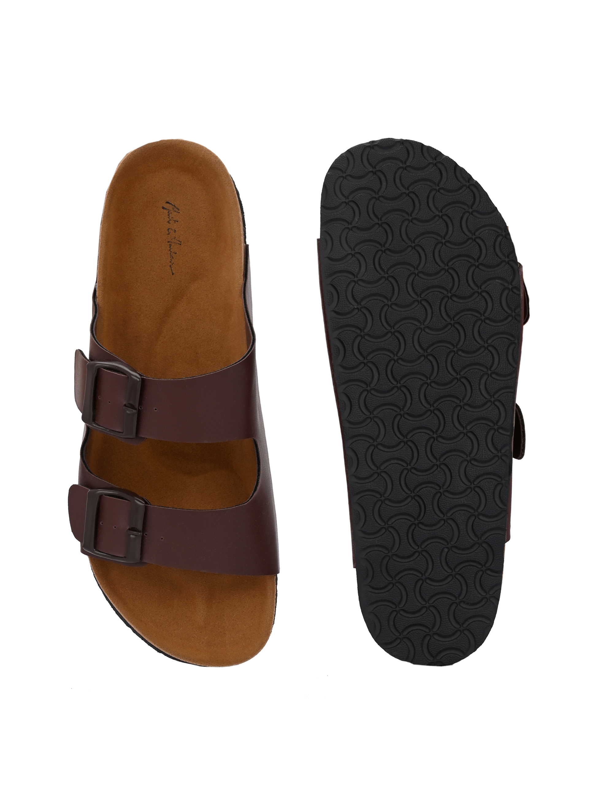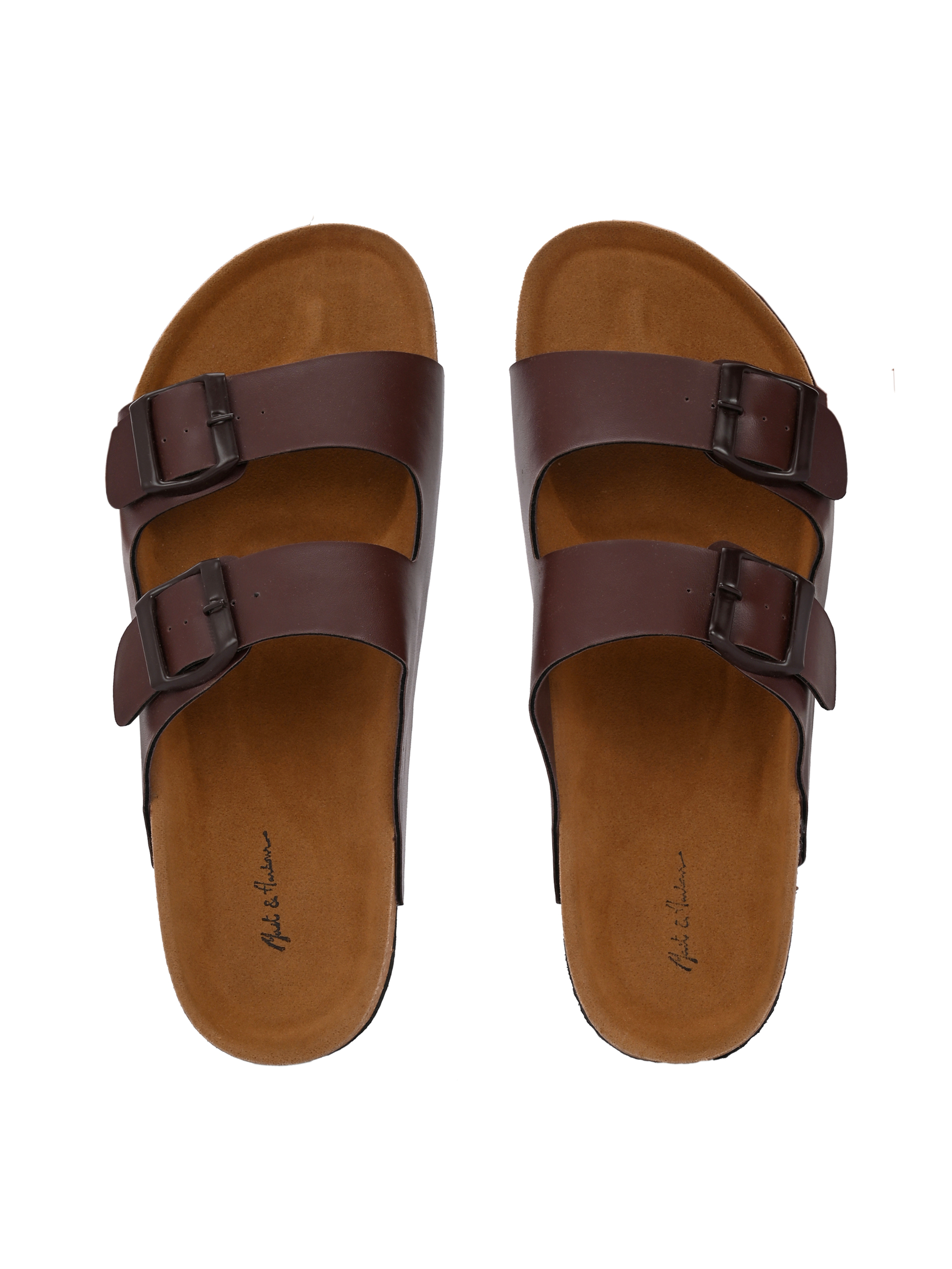 A pair of brown comfort sandals