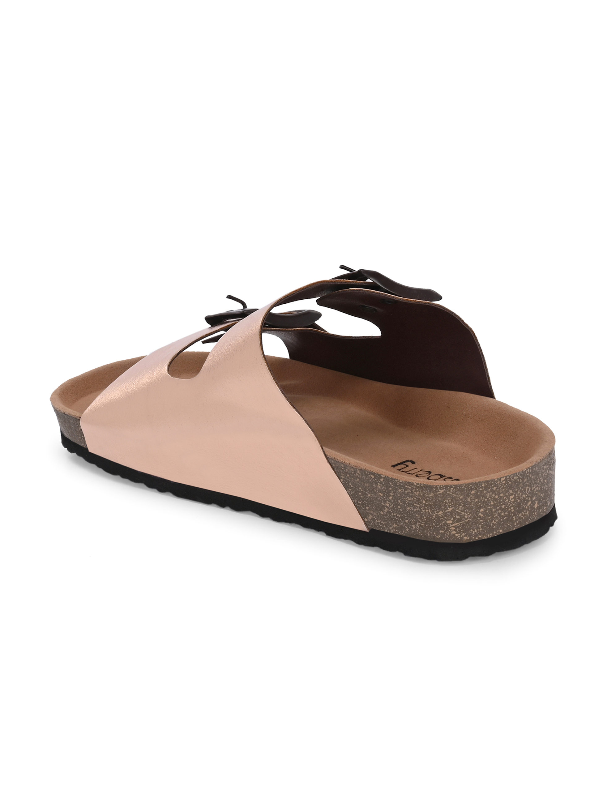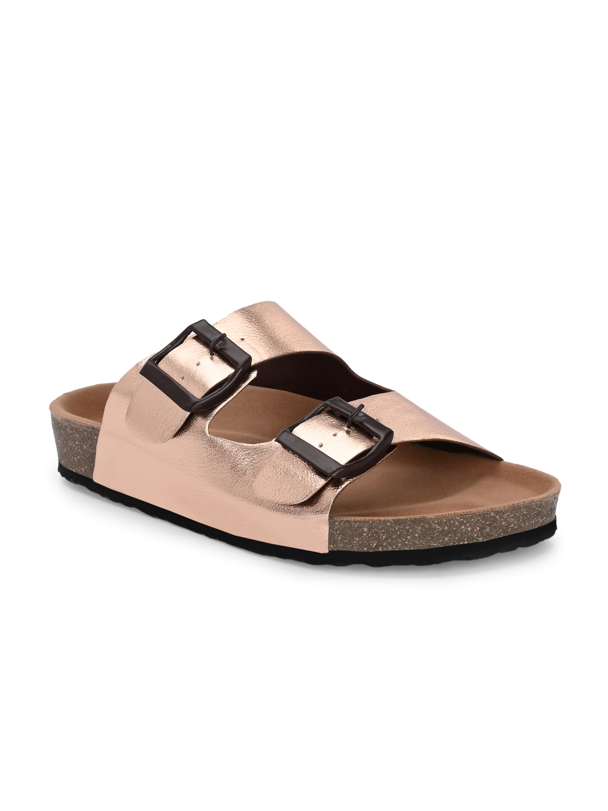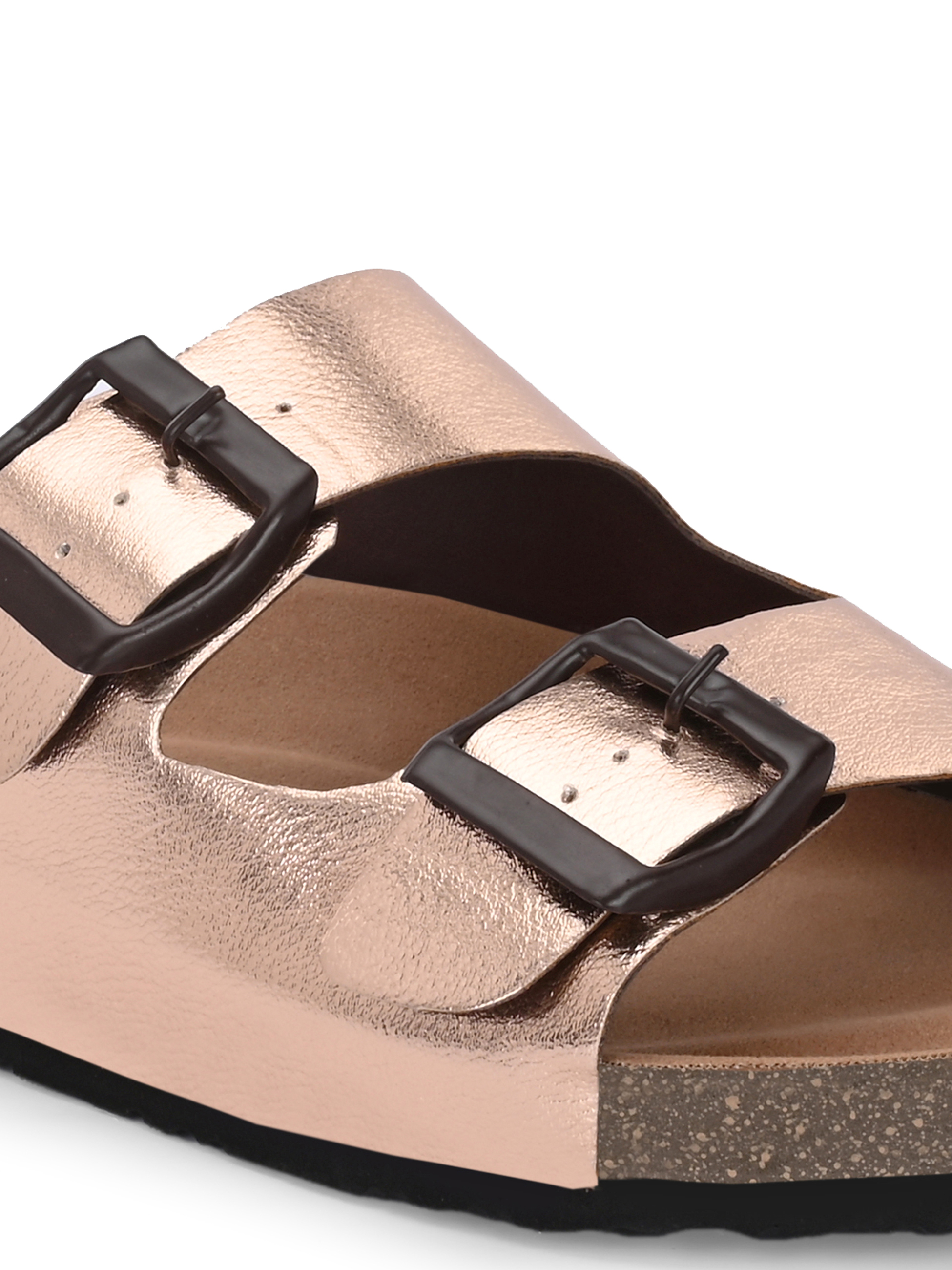 A pair of Rose Gold solid comfort Sandals, secured with a slip on closure