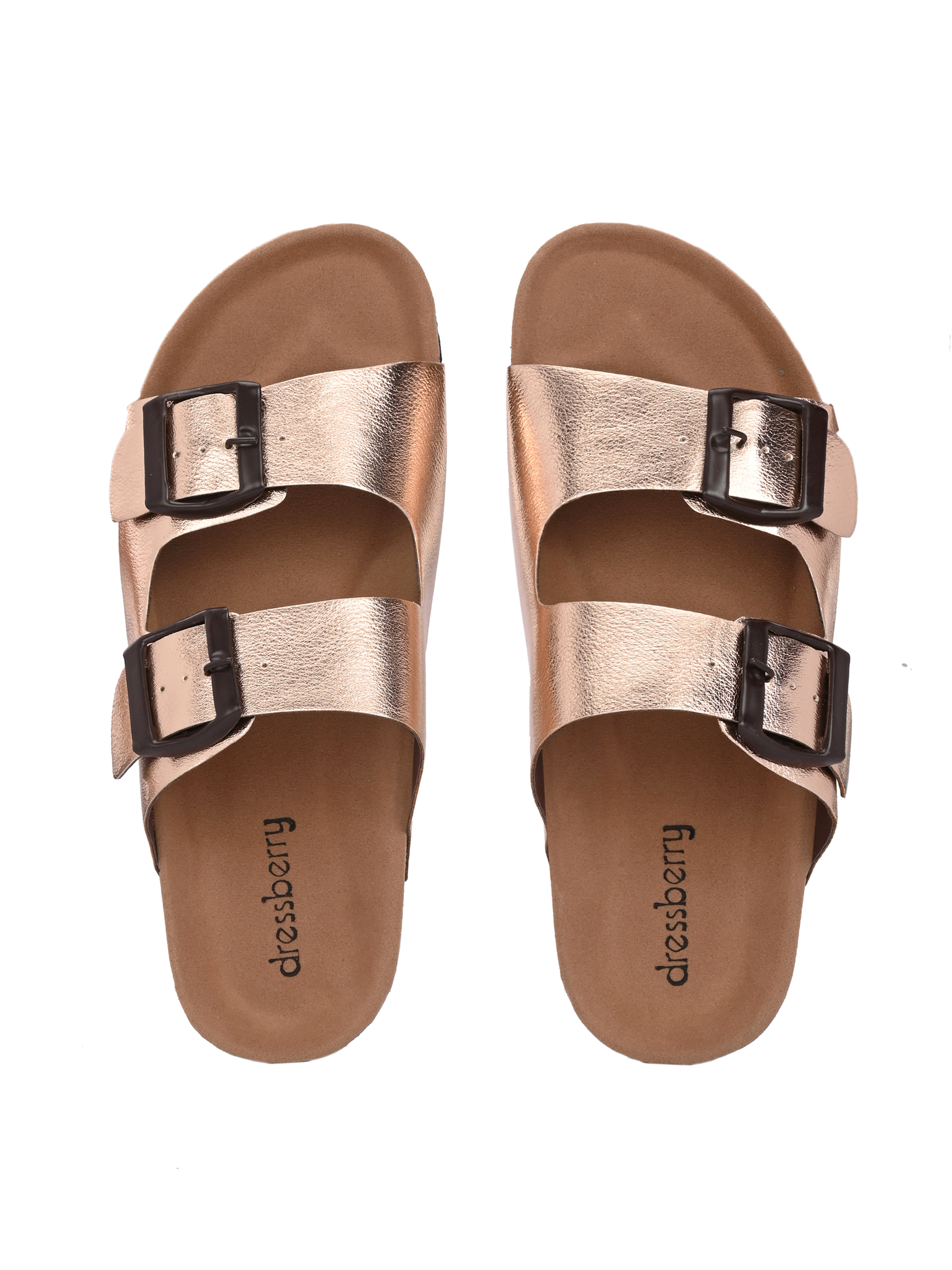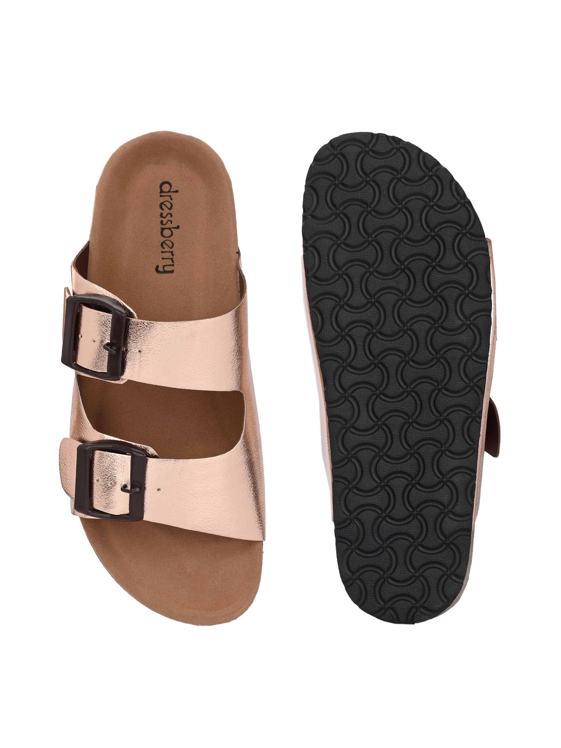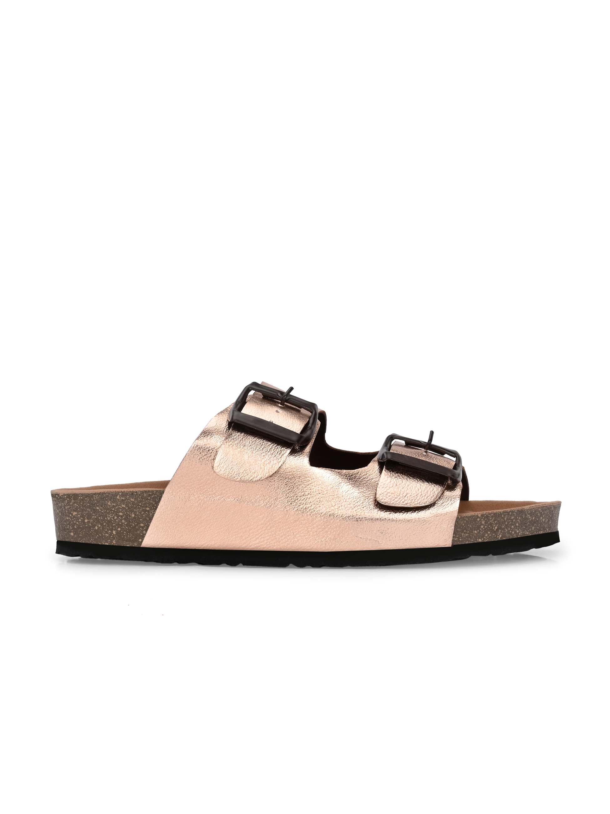 A pair of Rose Gold solid comfort Sandals, secured with a slip on closure