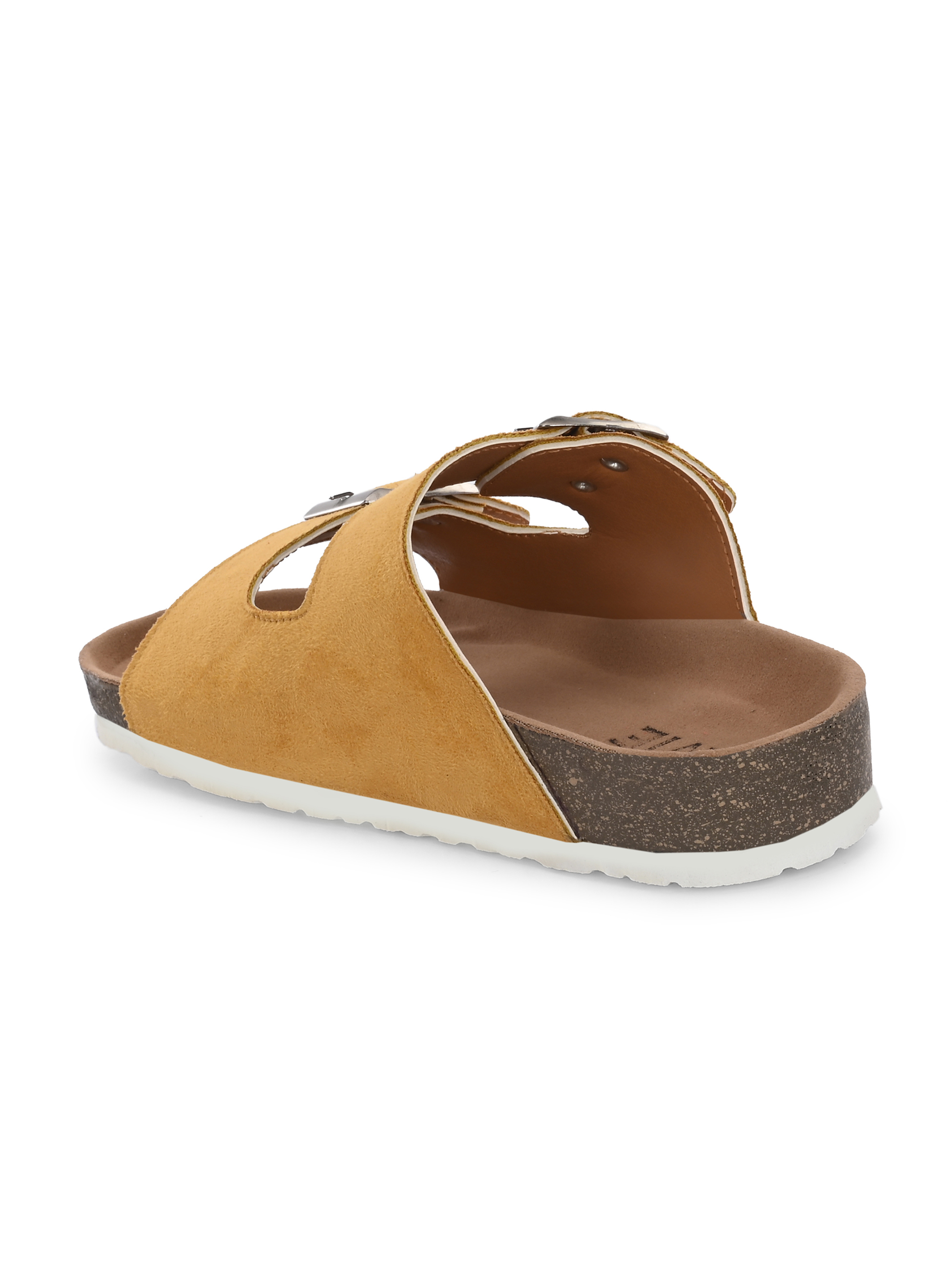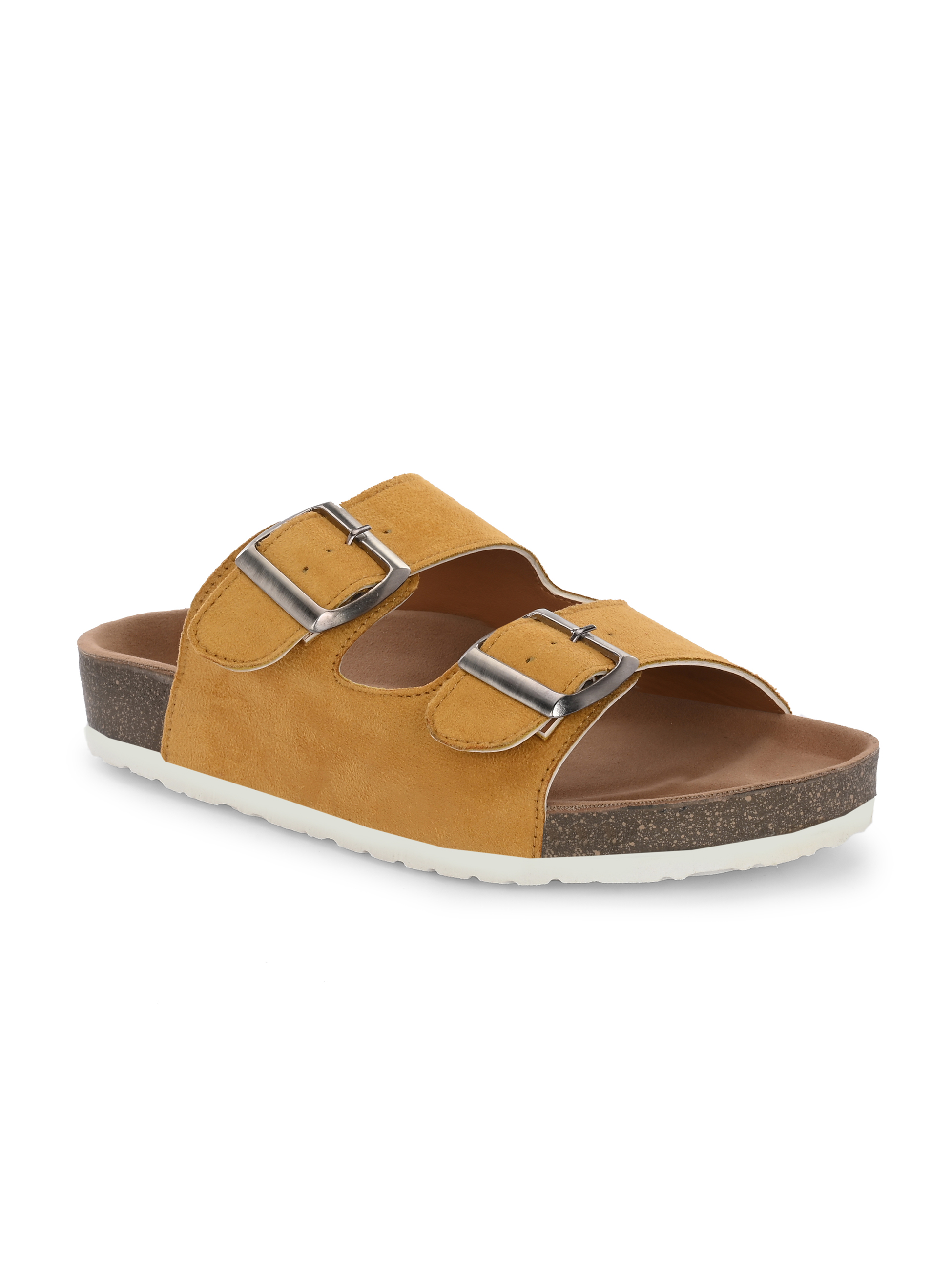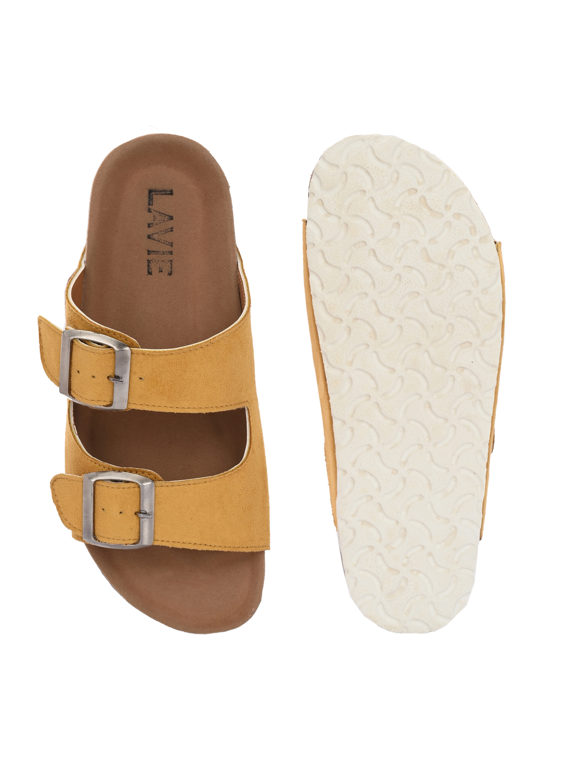 A pair of yellow solid comfort Sandals, secured with a slip on closure