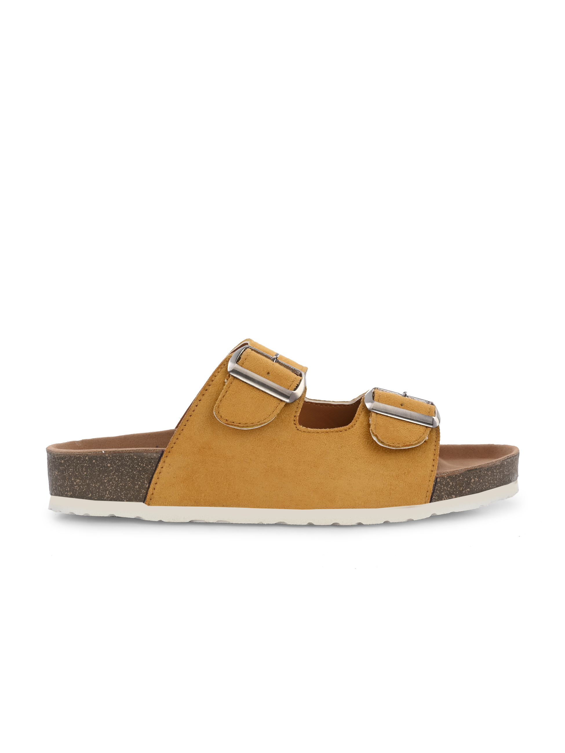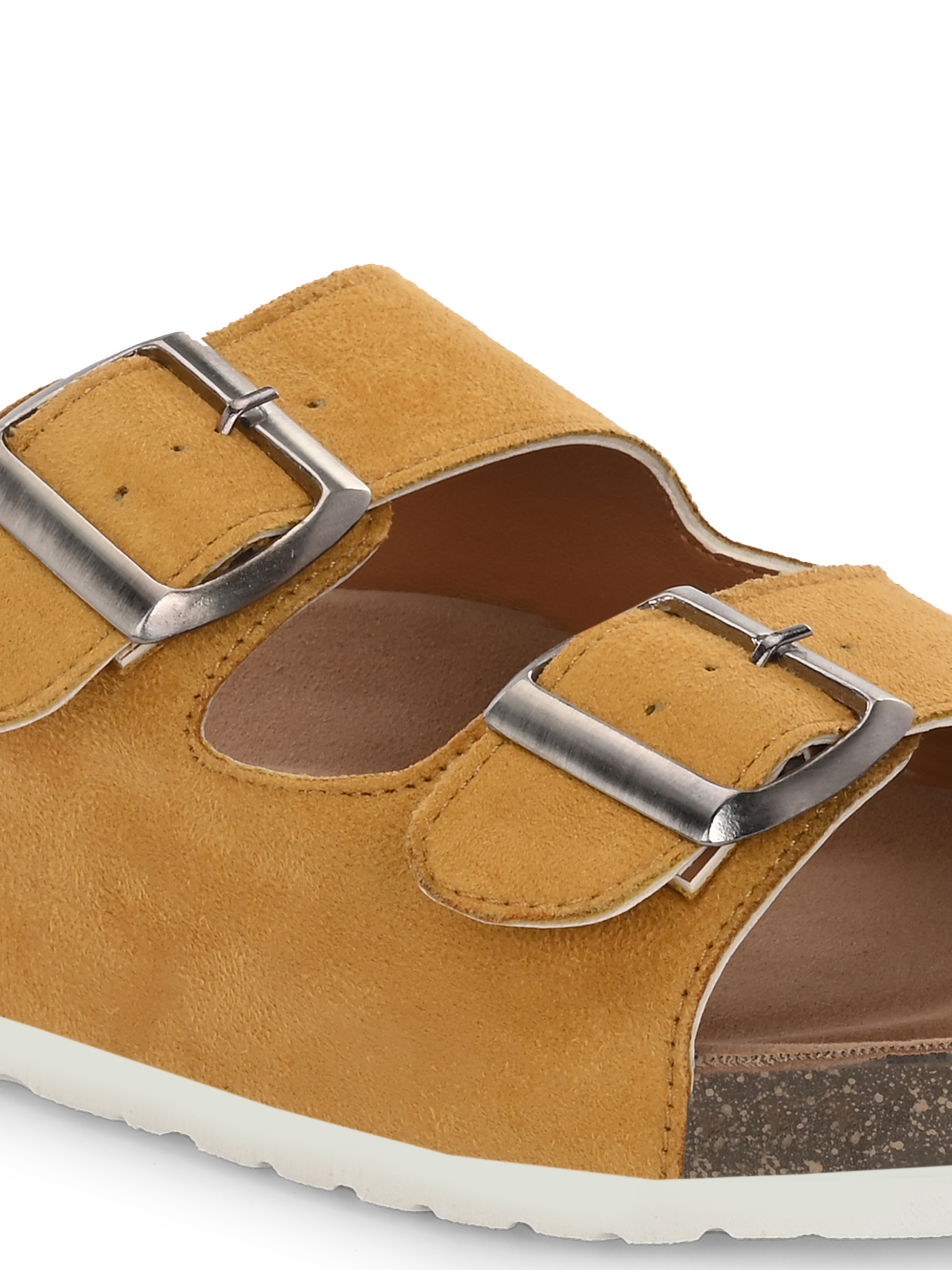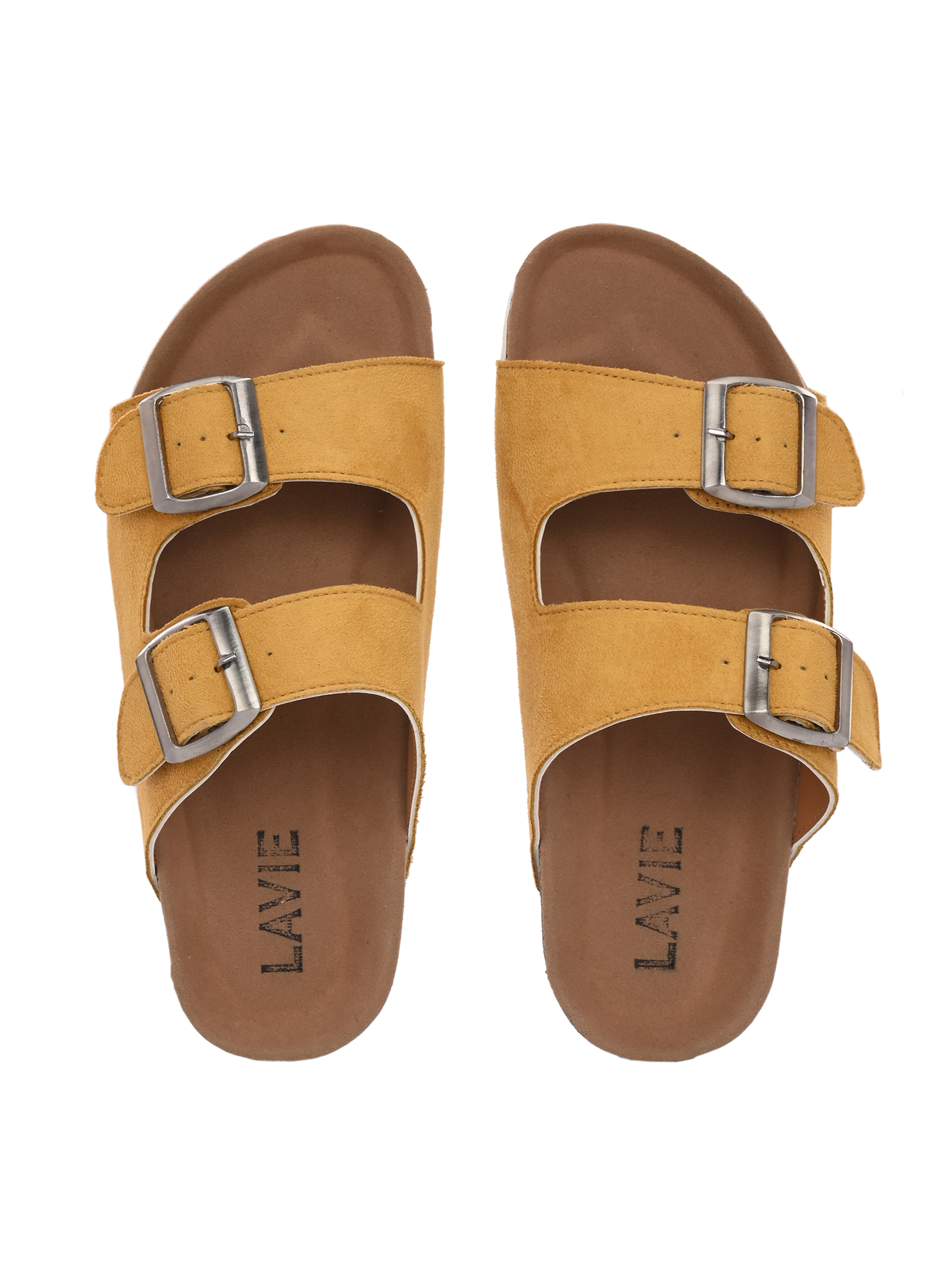 A pair of yellow solid comfort Sandals, secured with a slip on closure