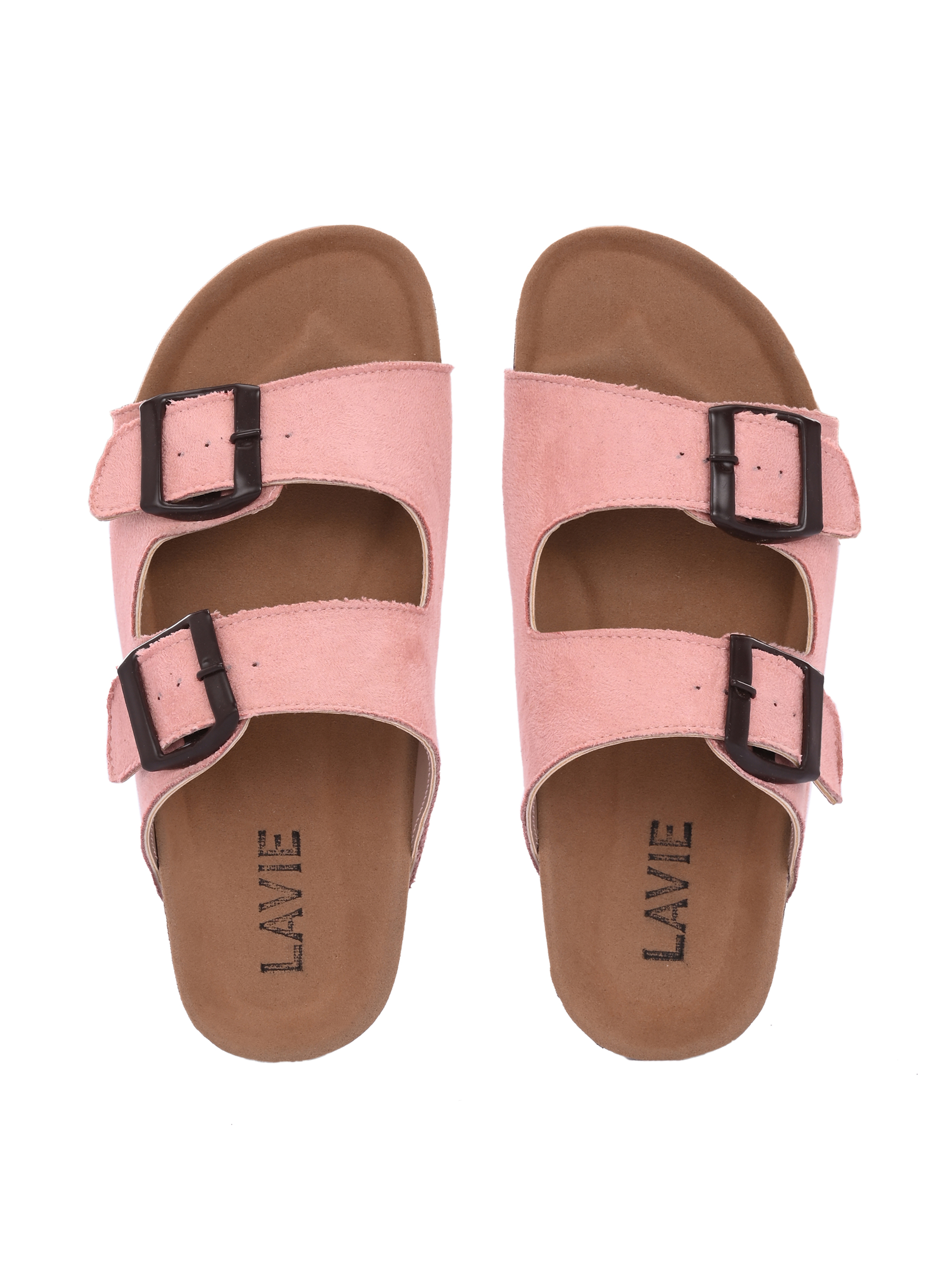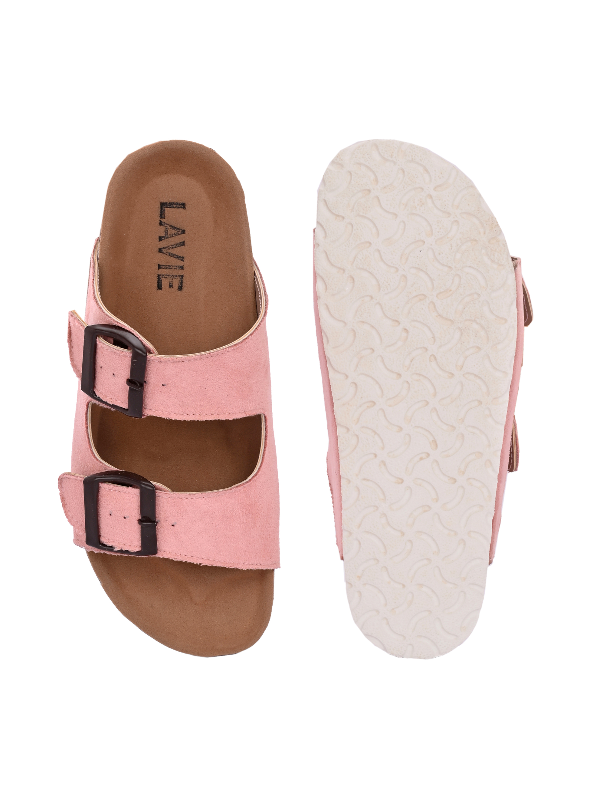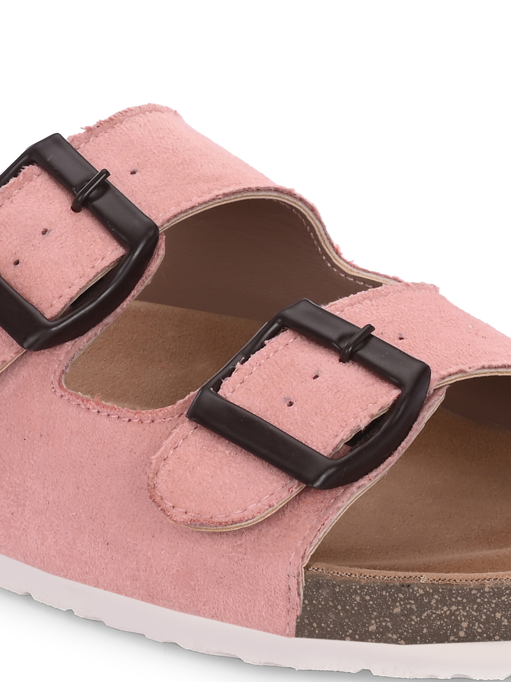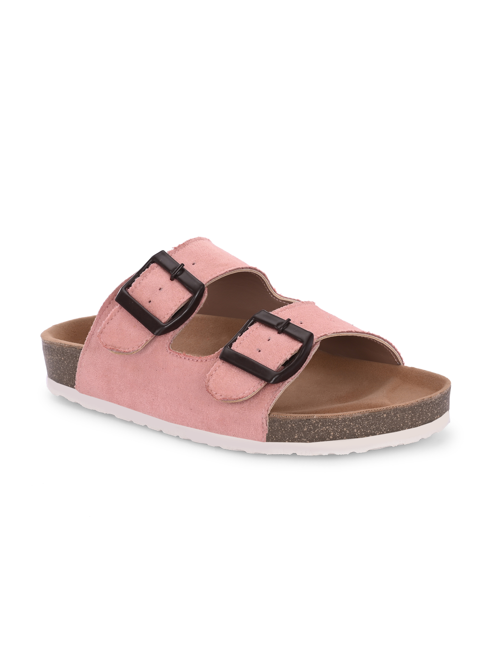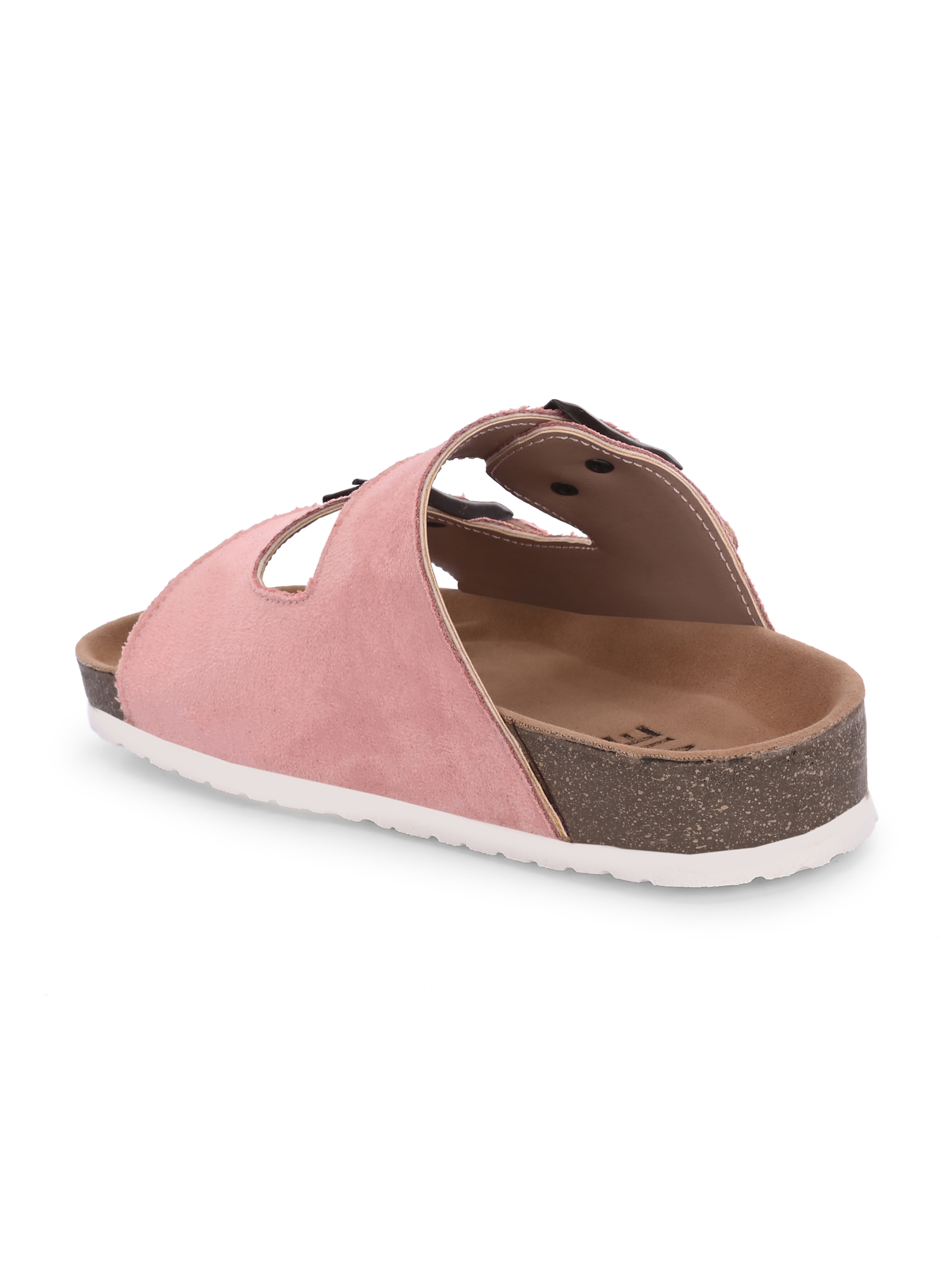 A pair of PINK solid comfort Sandals, secured with a slip on closure