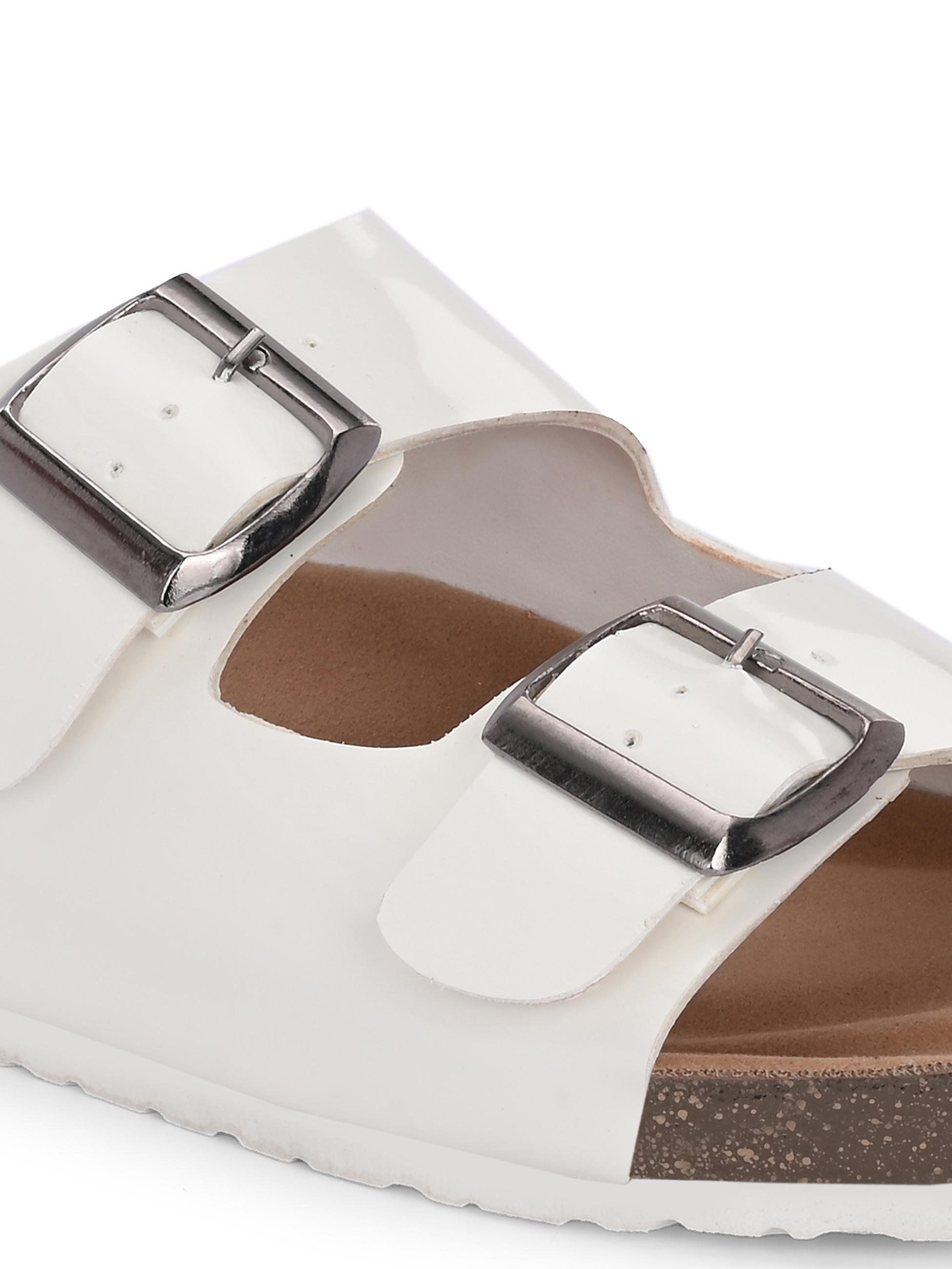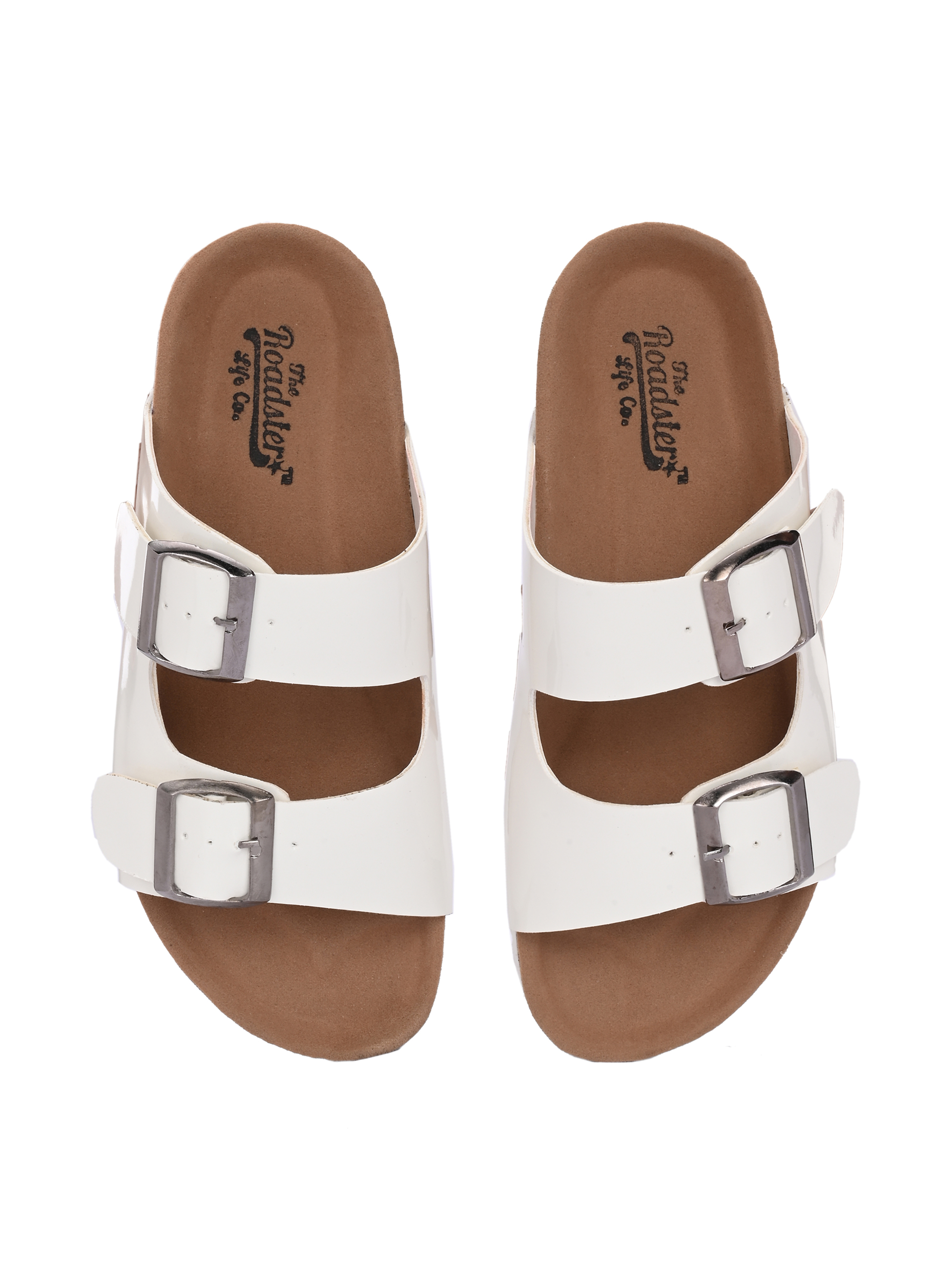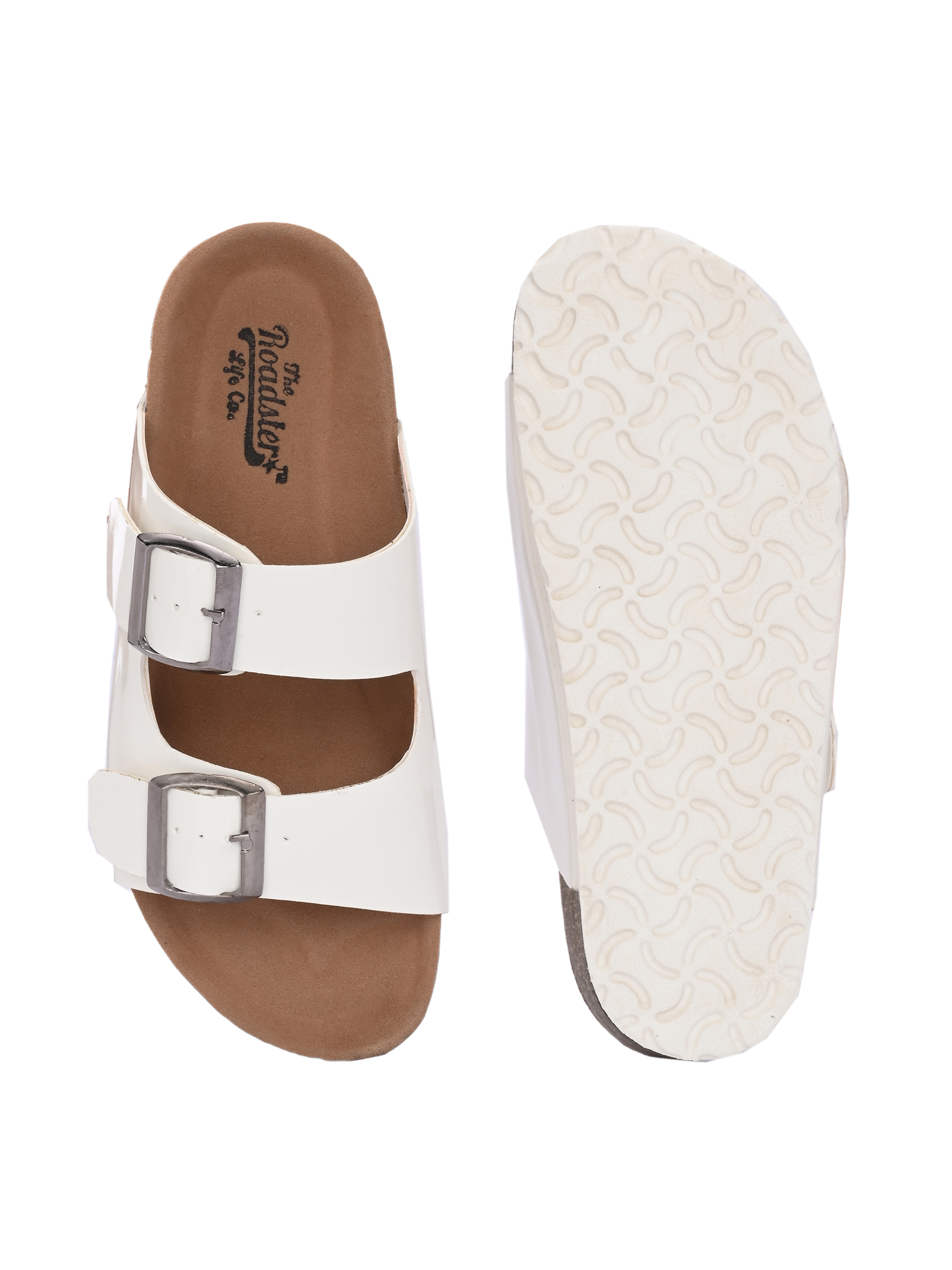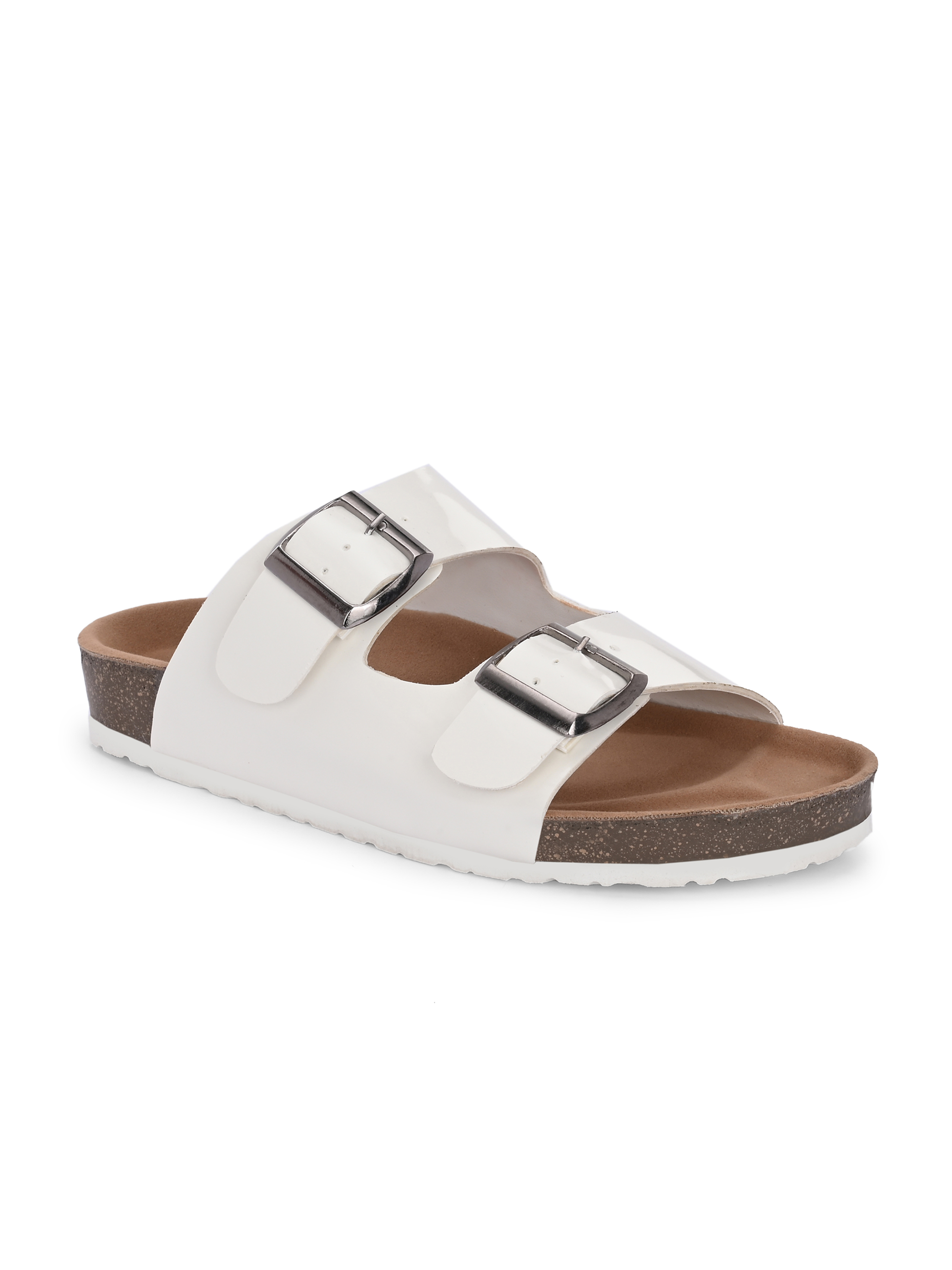 A pair of white solid comfort Sandals, secured with a slip on closure