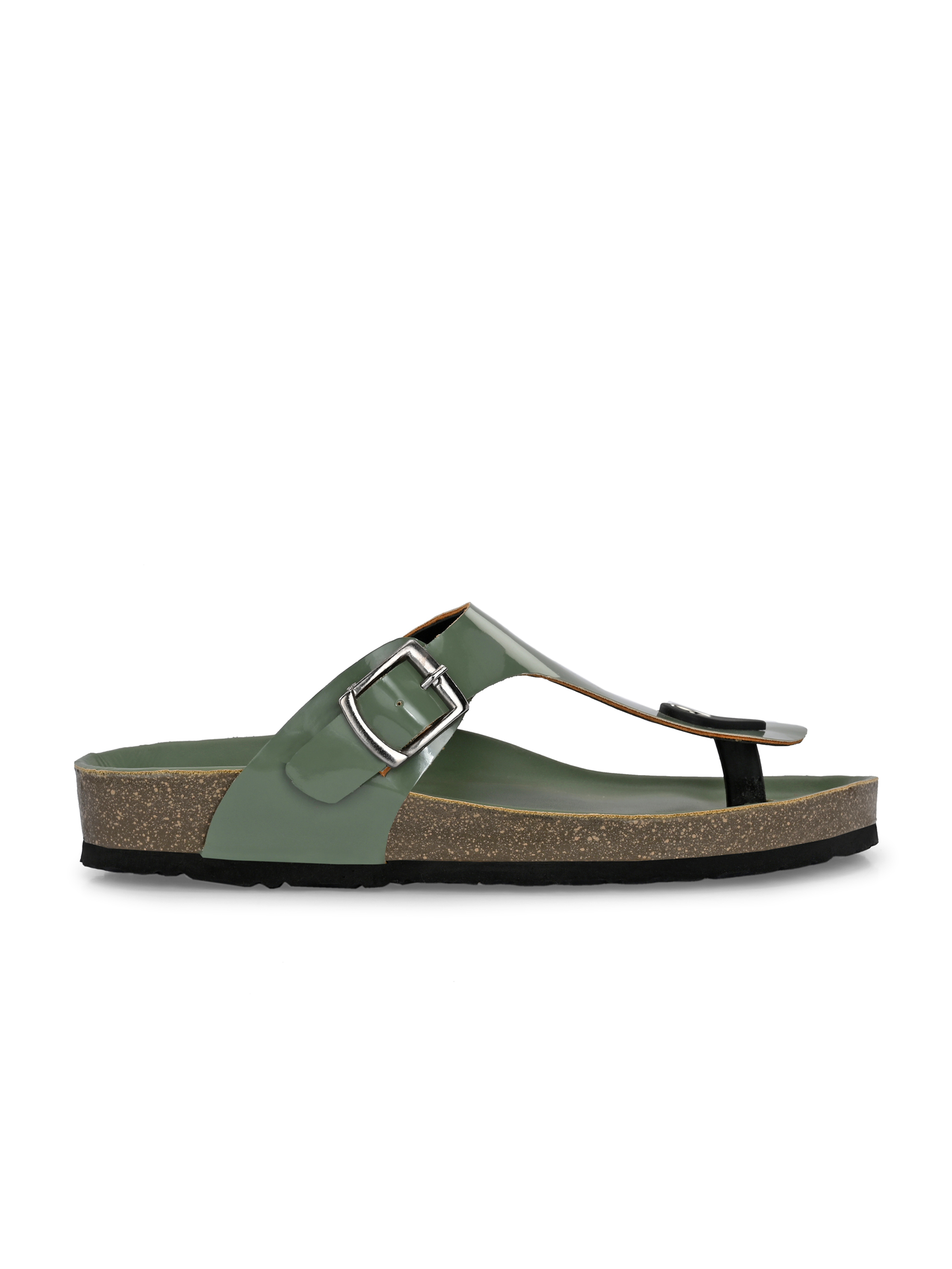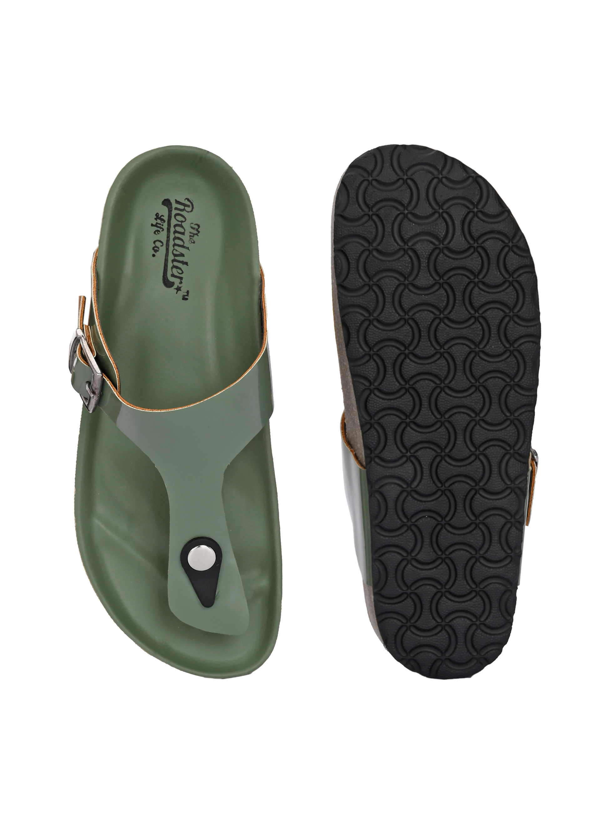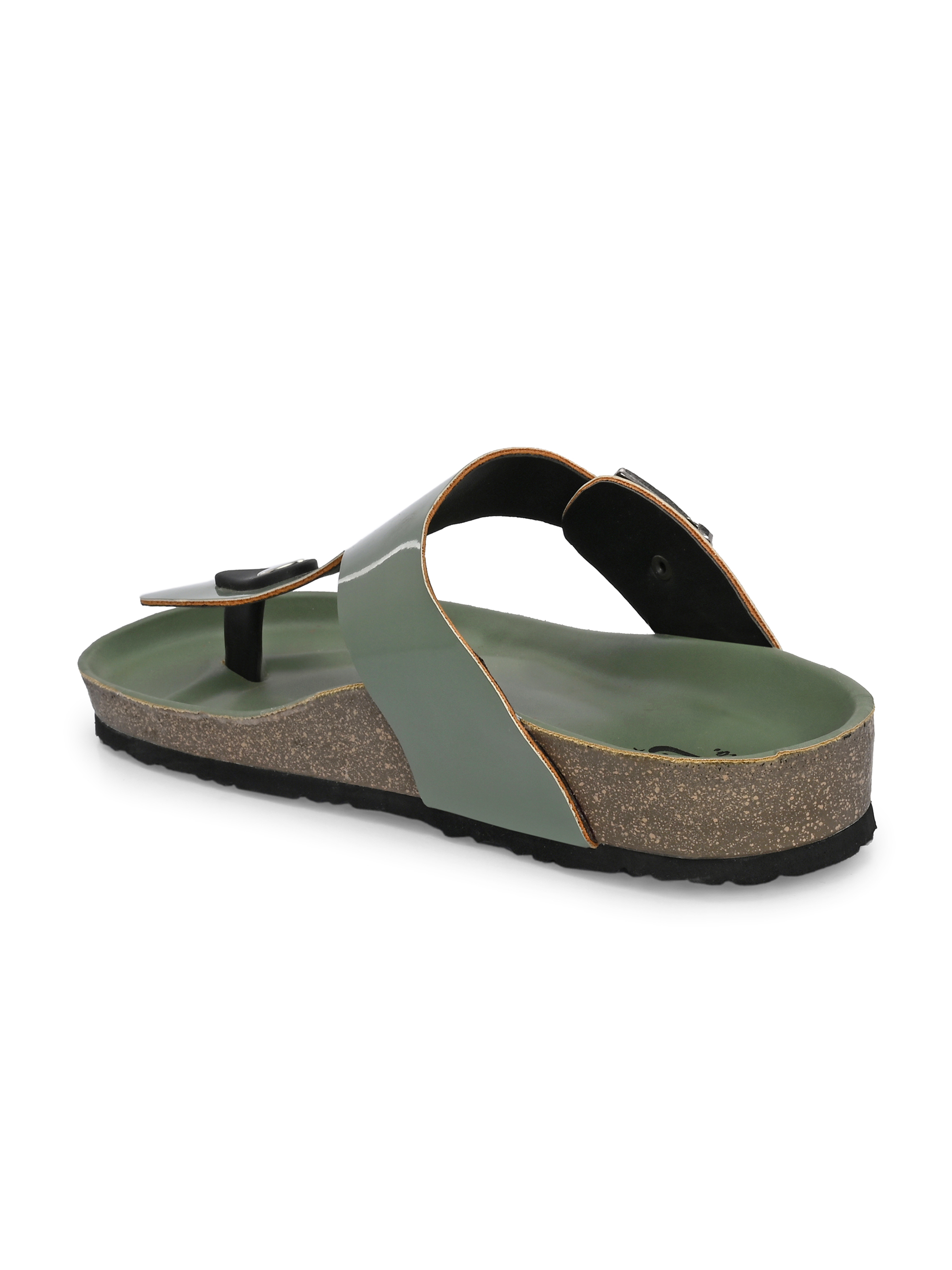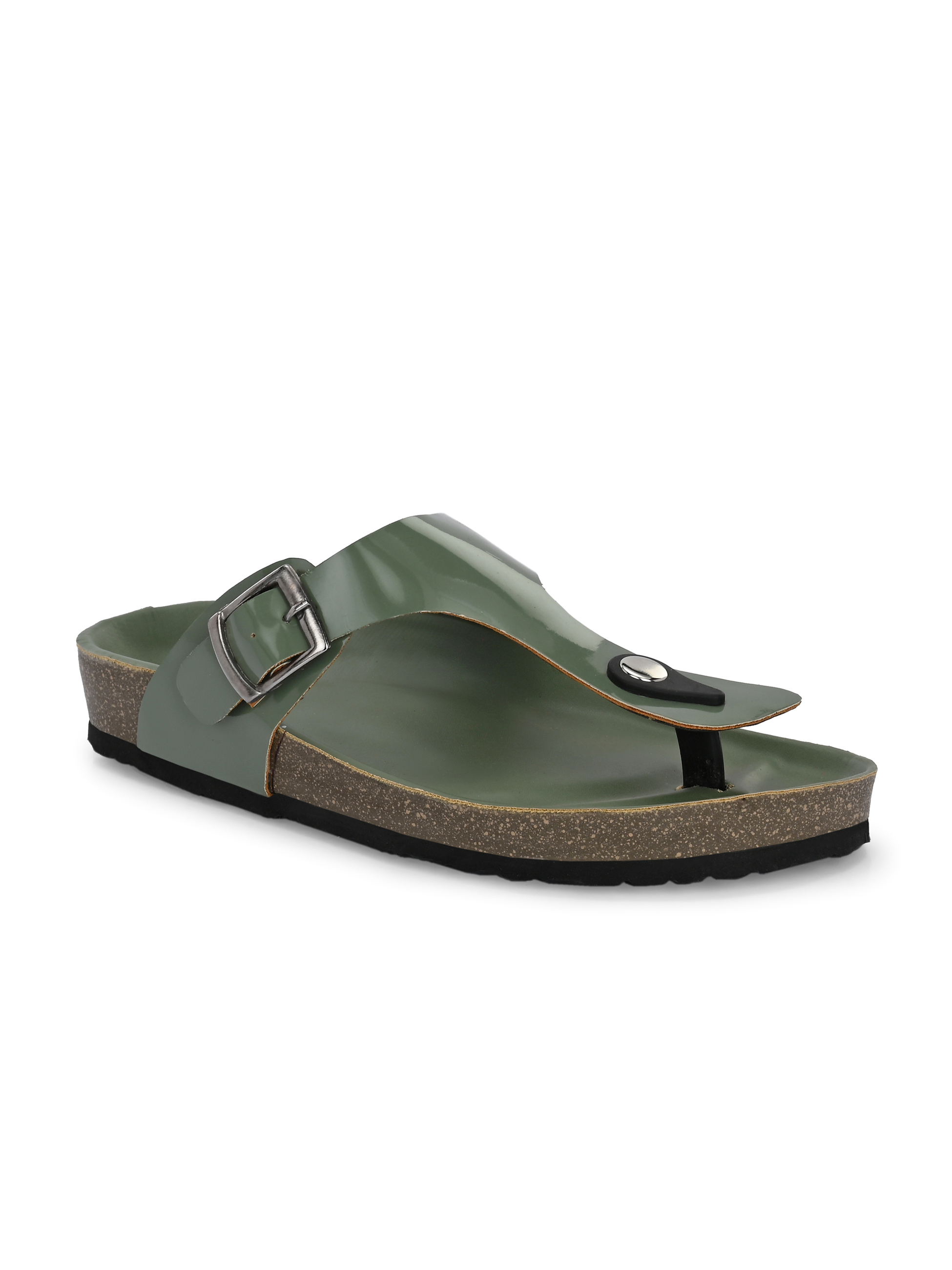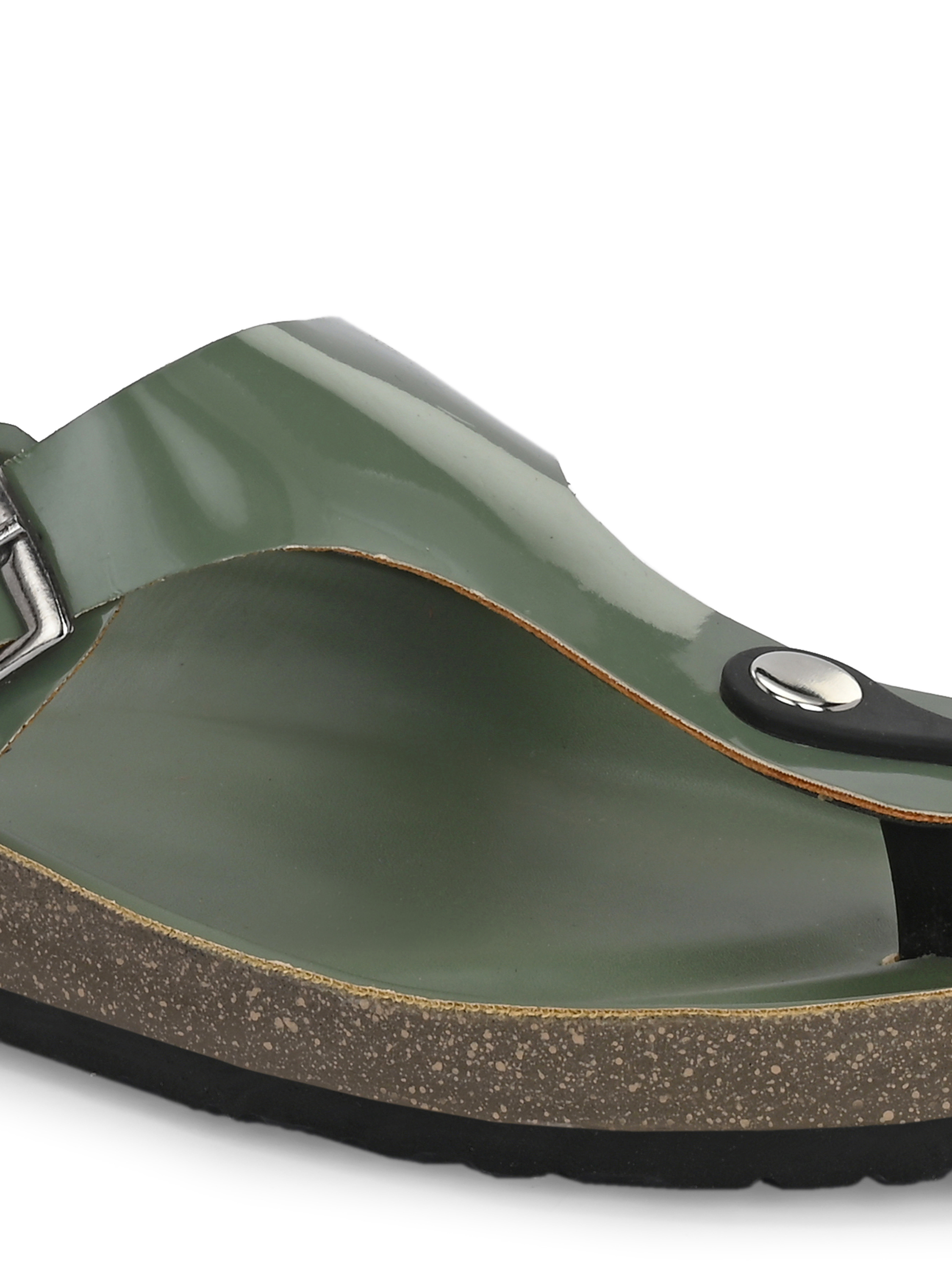 A pair of green solid comfort Sandals, secured with a slip on closure