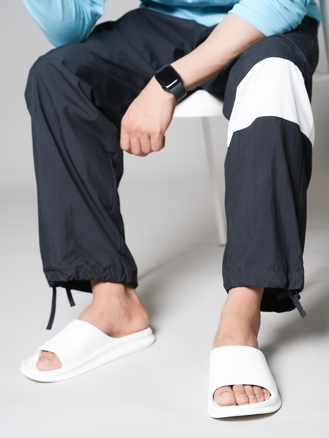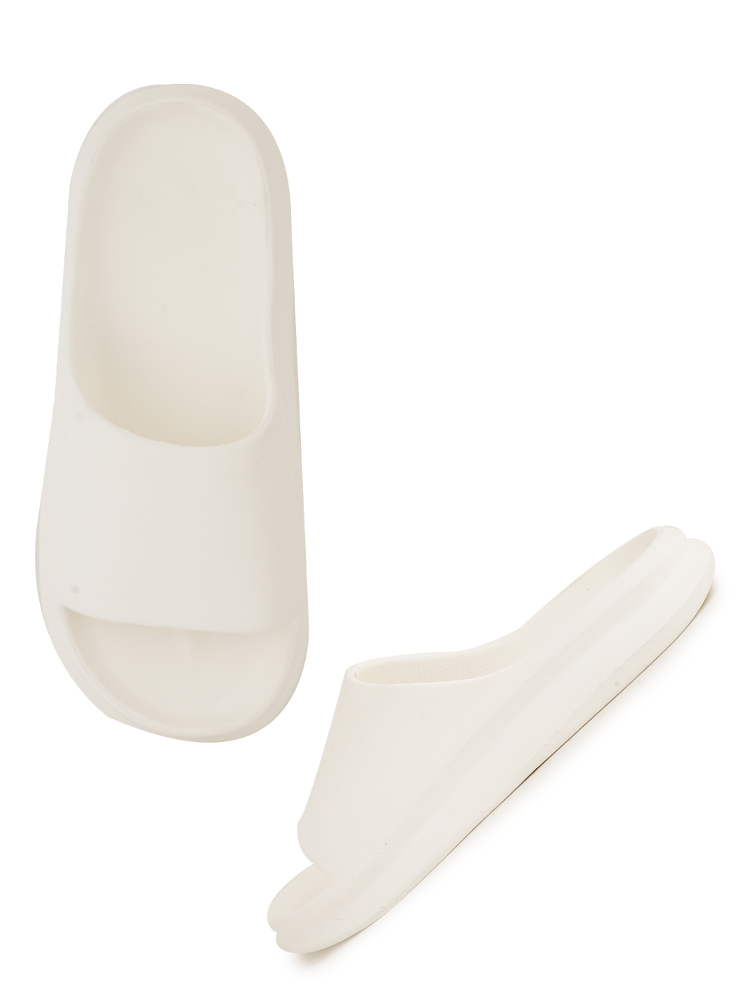 A pair of white solid sliders