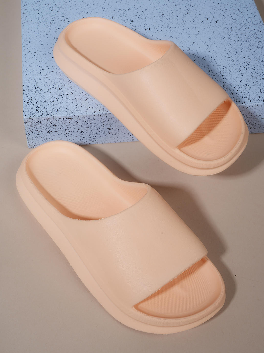 A pair of Peach solid sliders