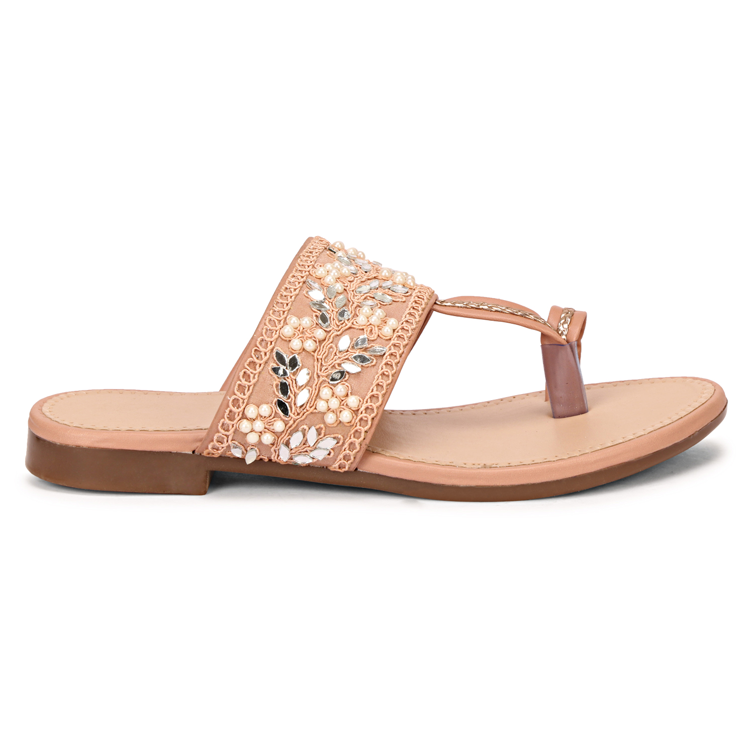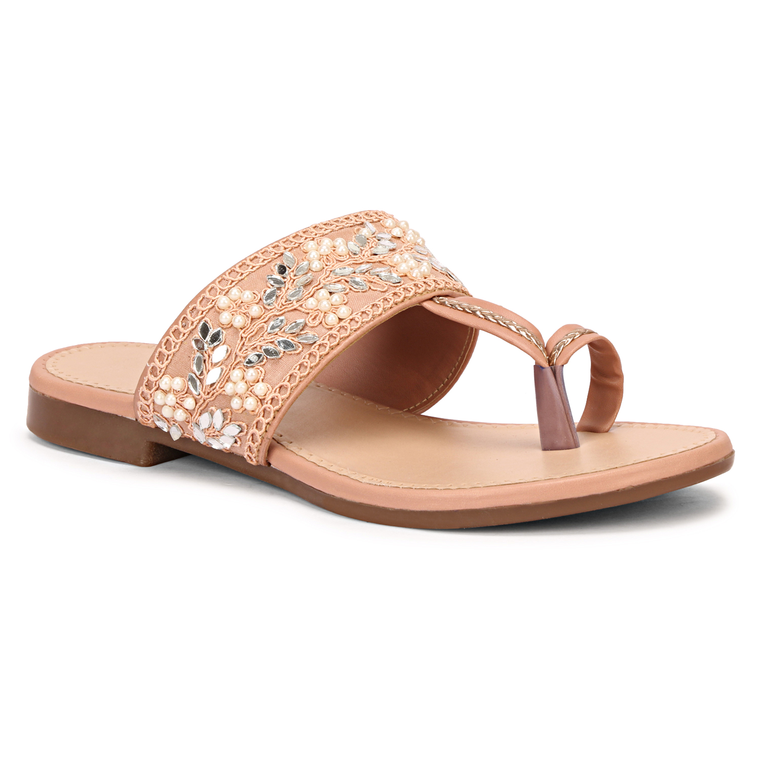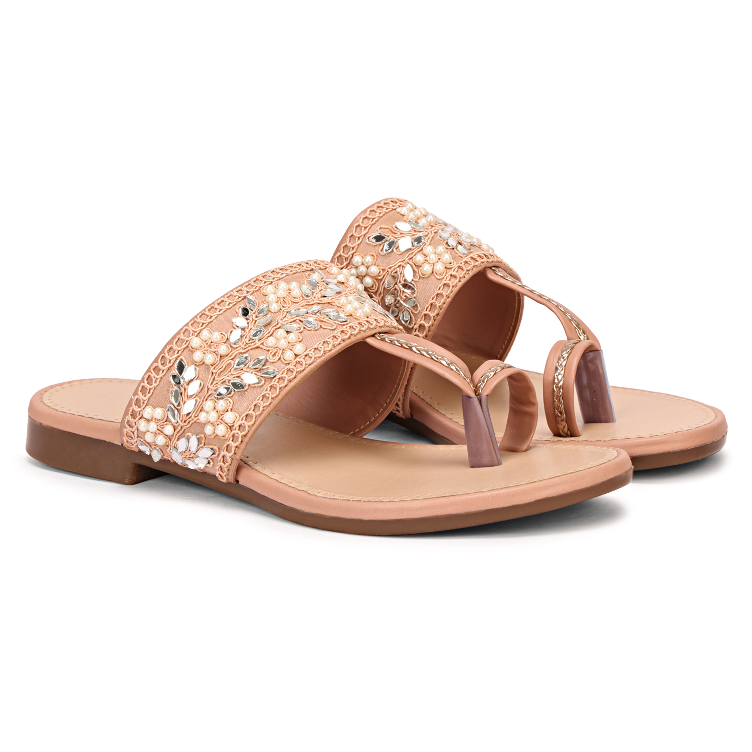 Girls Embellished Ethnic One Toe Flats with Embroidered