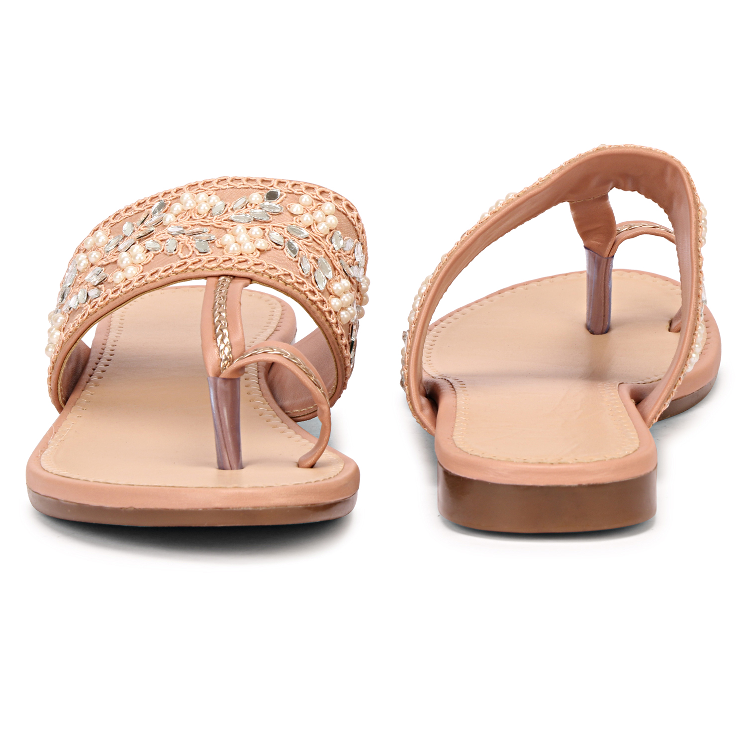 A pair of Peach-toned open toe flats
