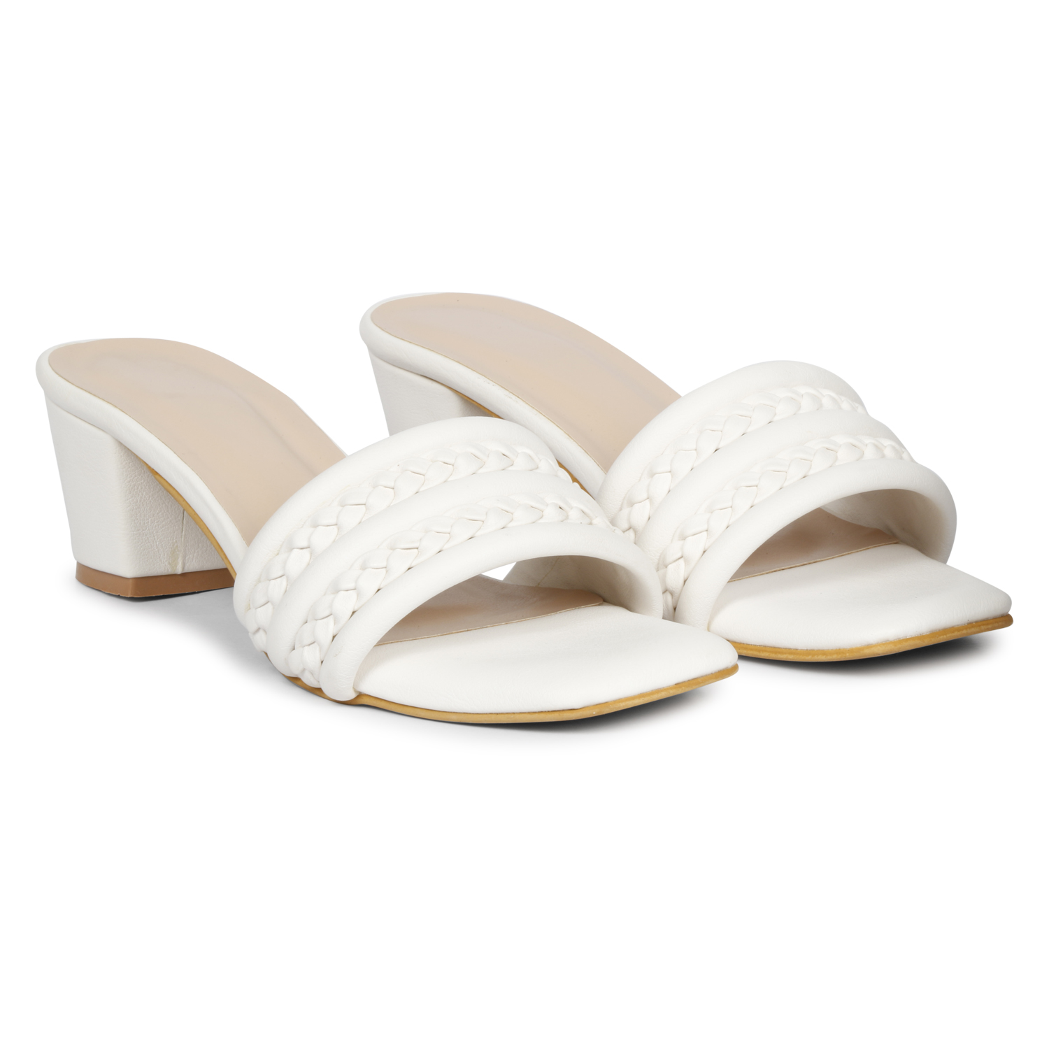 A pair of White solid sandal heels