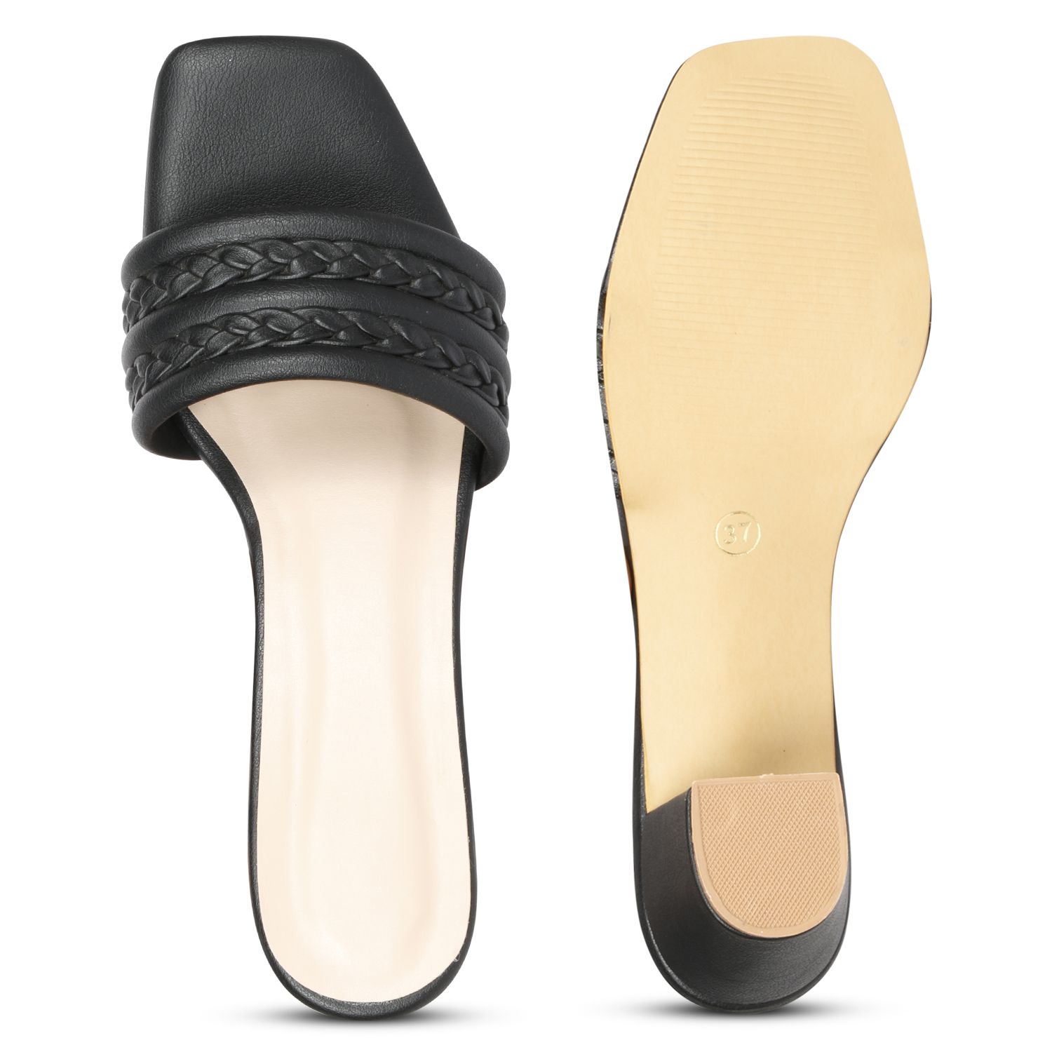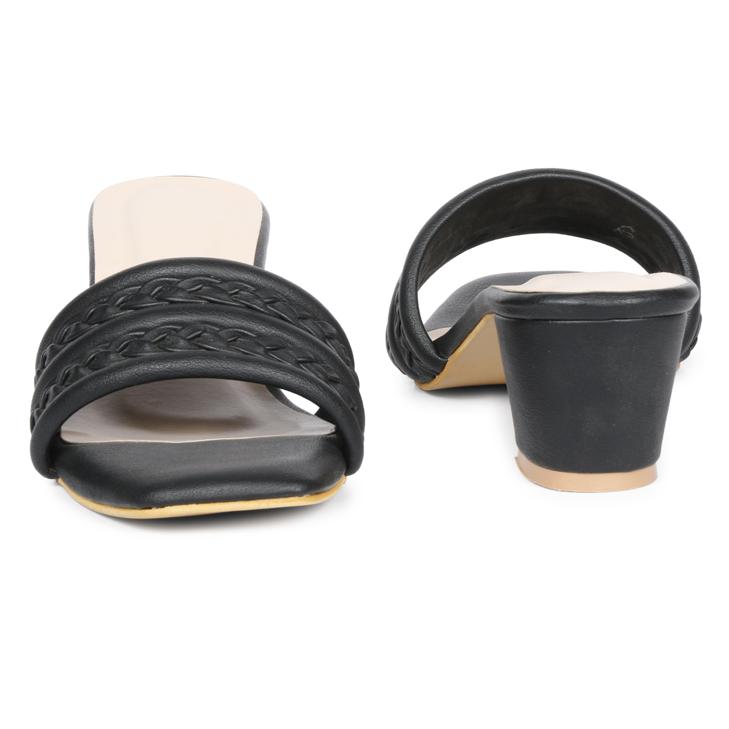 A pair of Black solid sandal heels