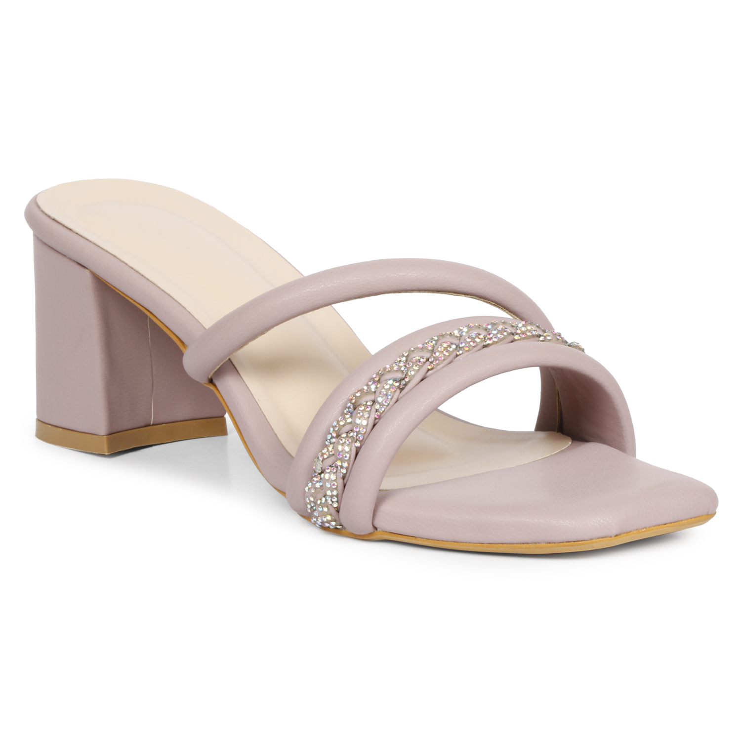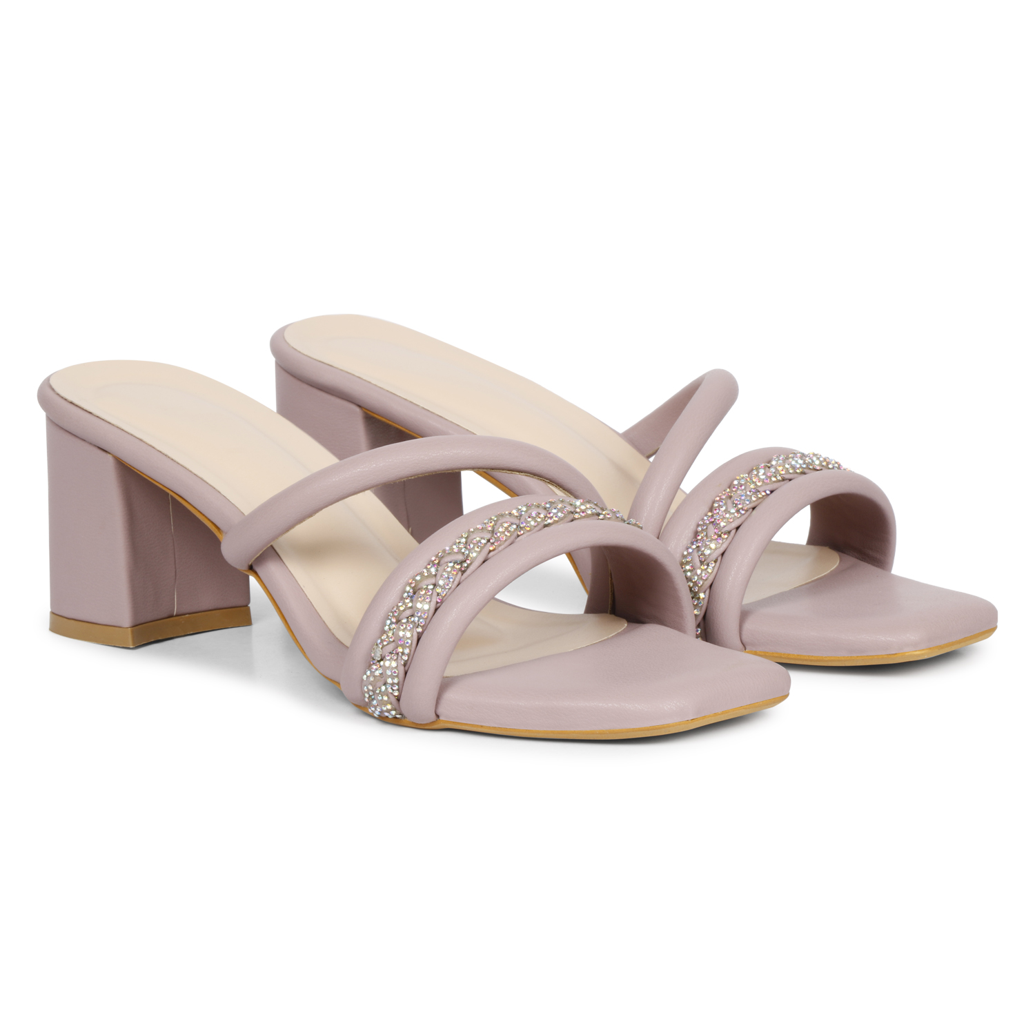 A pair of lavender solid sandal heels