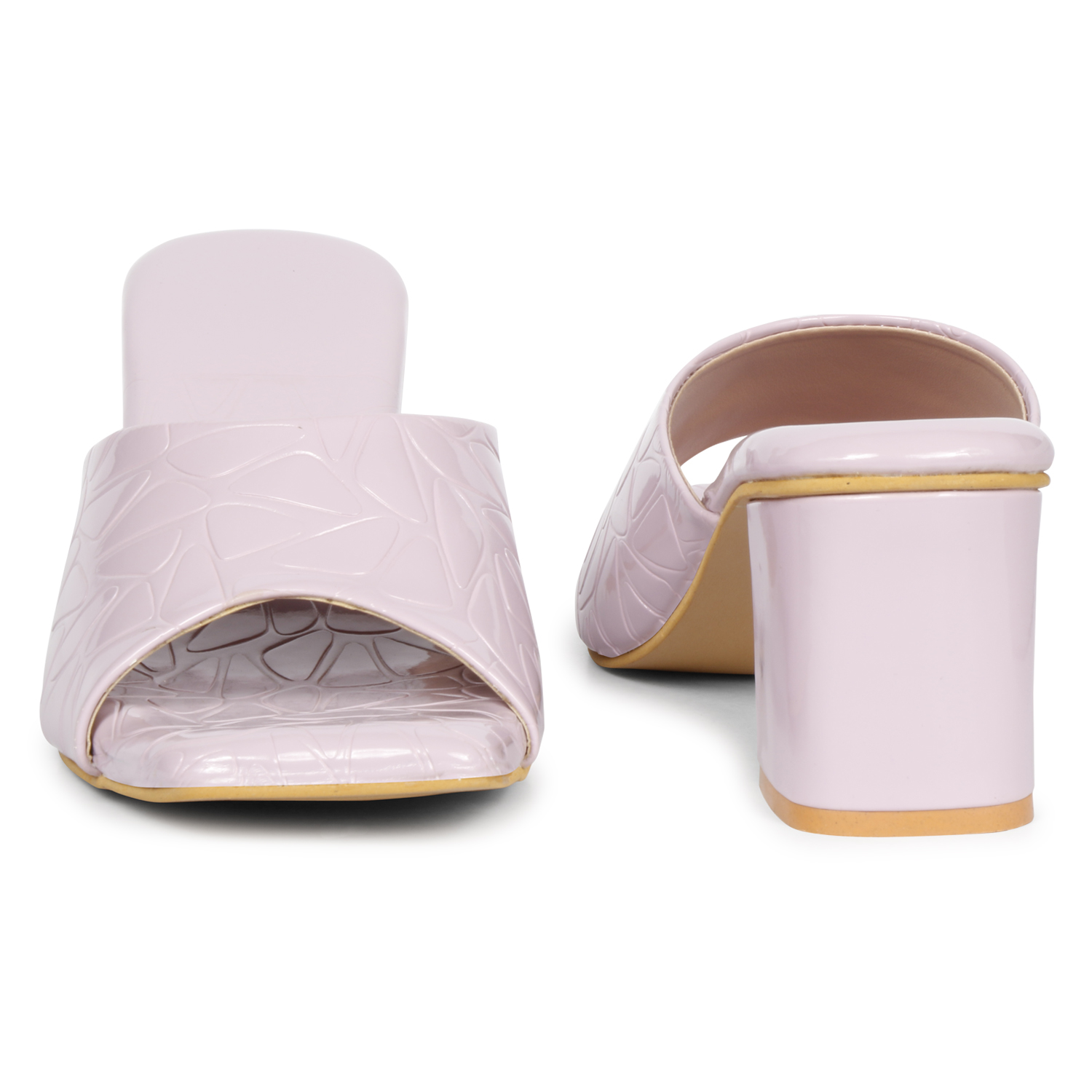 A pair of lavender  solid sandal heels