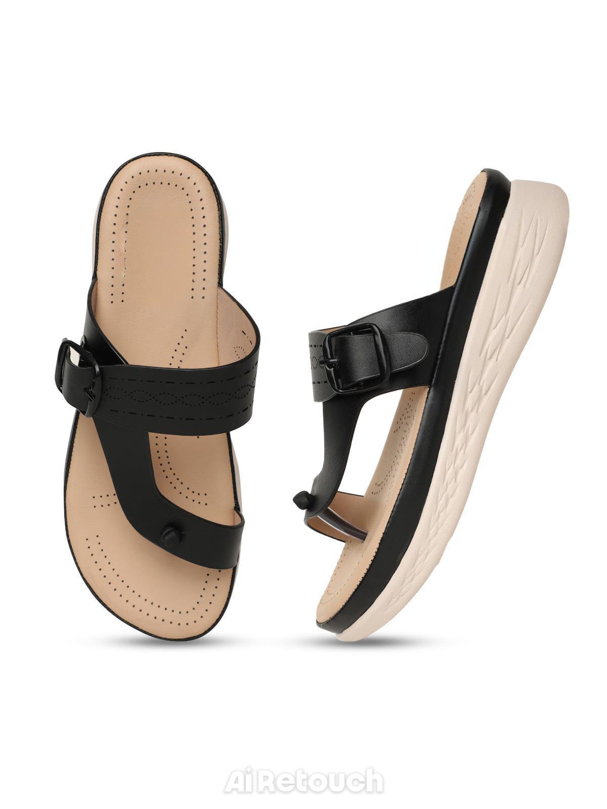 Strike the perfect balance of style and comfort with this pair of sandals from NEKMO FASHION. The PU upper offers a blend of durability and style, with a PU sole that ensures reliable traction at all times. The pair also comes with a round-shaped tip that further elevates its look.